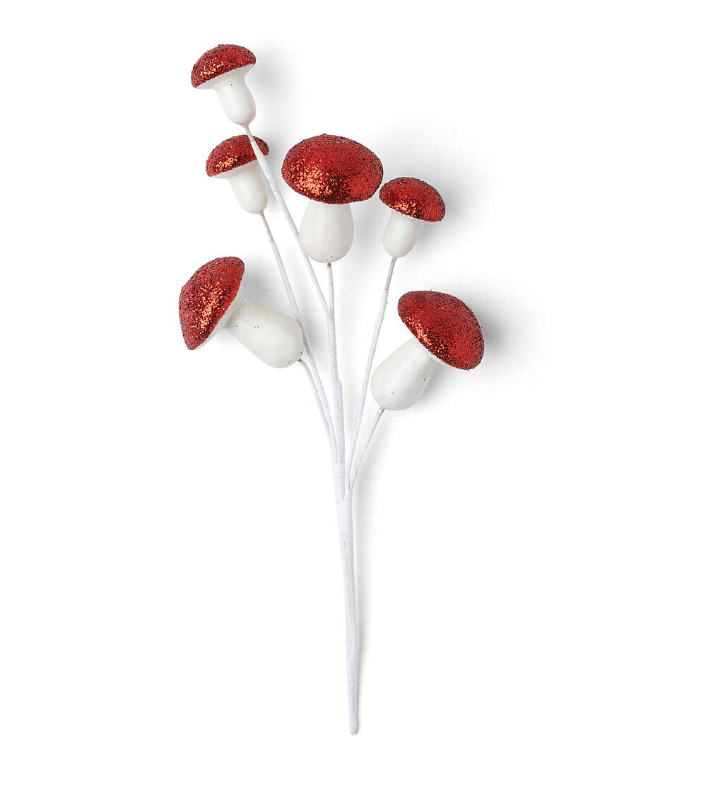 Bring Some Festive Cheer to Your Home with the 10″ Christmas Red Mushroom Pick by Bloom Room