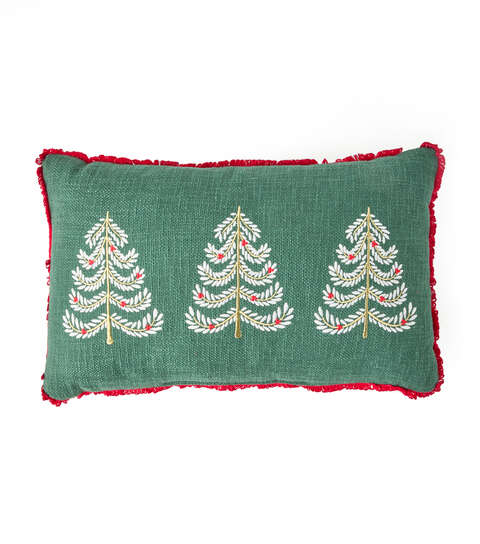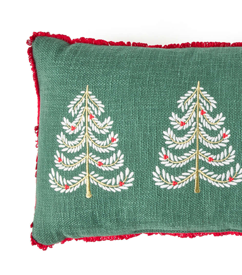 Add a Festive Touch to Your Home with the 10″ x 20″ Green & Red Christmas Trees Pillow by Place & Time