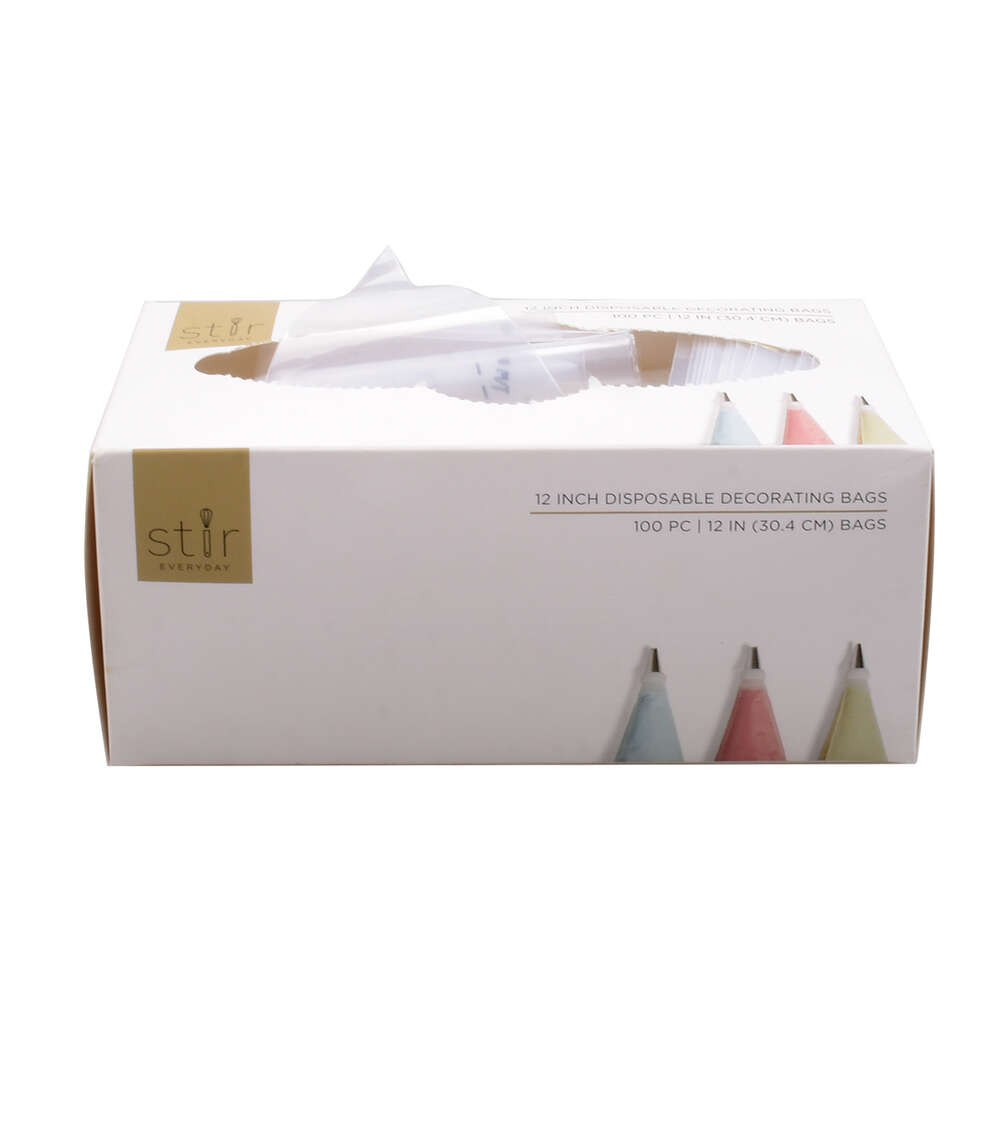Decorate cupcakes, cookies, cakes, and more with these disposable decorating bags. The 12-in. size fits plenty of icing, and the sturdy plastic prevents tearing. Best of all, the bags are disposable, so clean-up is a breeze!