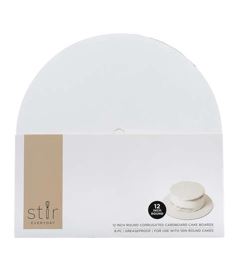 Decorate homemade cakes with ease using the STIR Everyday Round Corrugated Cardboard Cake Boards. These round cake boards are made from corrugated cardboard and are sturdy. They are greaseproof and can easily be cleaned. This pack includes eight 12-inch cake boards that you can use with 10-inch cakes.