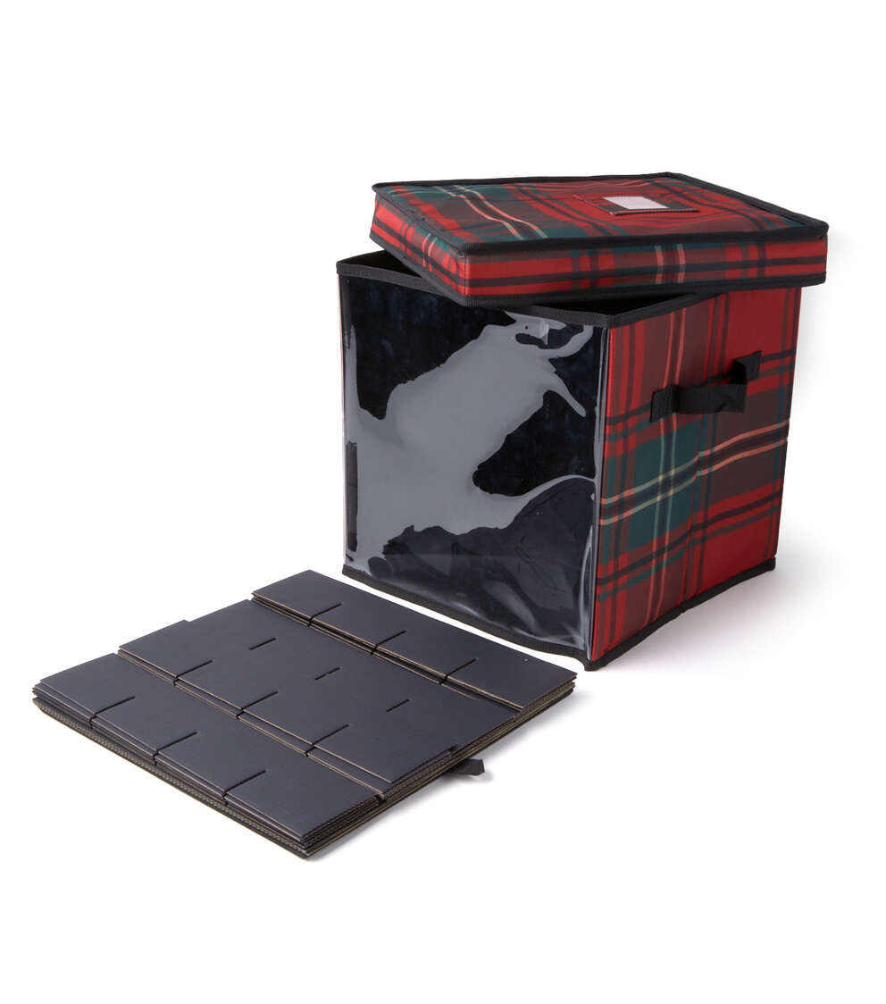 Keep Your Ornaments Safe and Organized with the 12″ x 12″ Christmas Plaid 64 Cell Ornament Storage by Place & Time