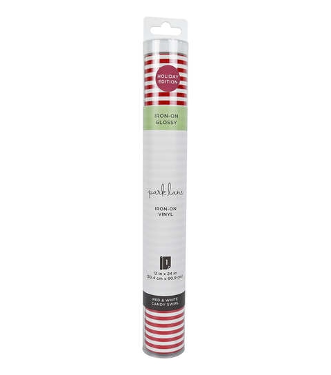 Add some holiday cheer to your next DIY project with this festive iron on vinyl from Park Lane. The vibrant red and white candy cane design is perfect for creating custom t-shirts, tote bags, and more. The high-temperature adhesive ensures a long lasting hold, so your creations will look great for seasons to come.