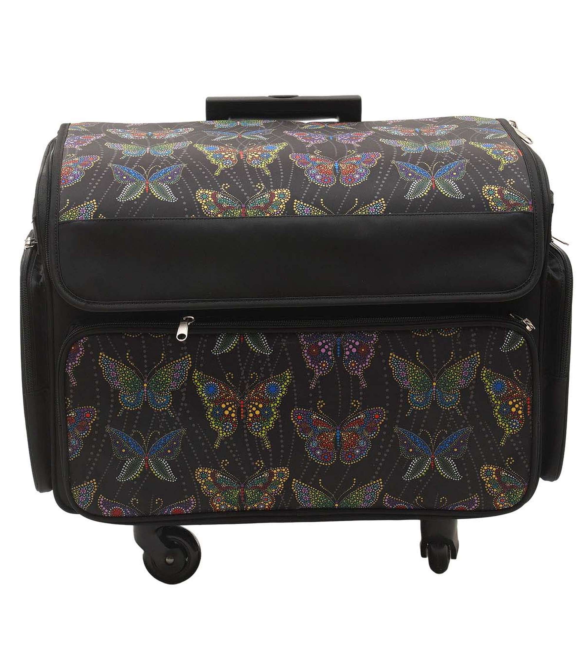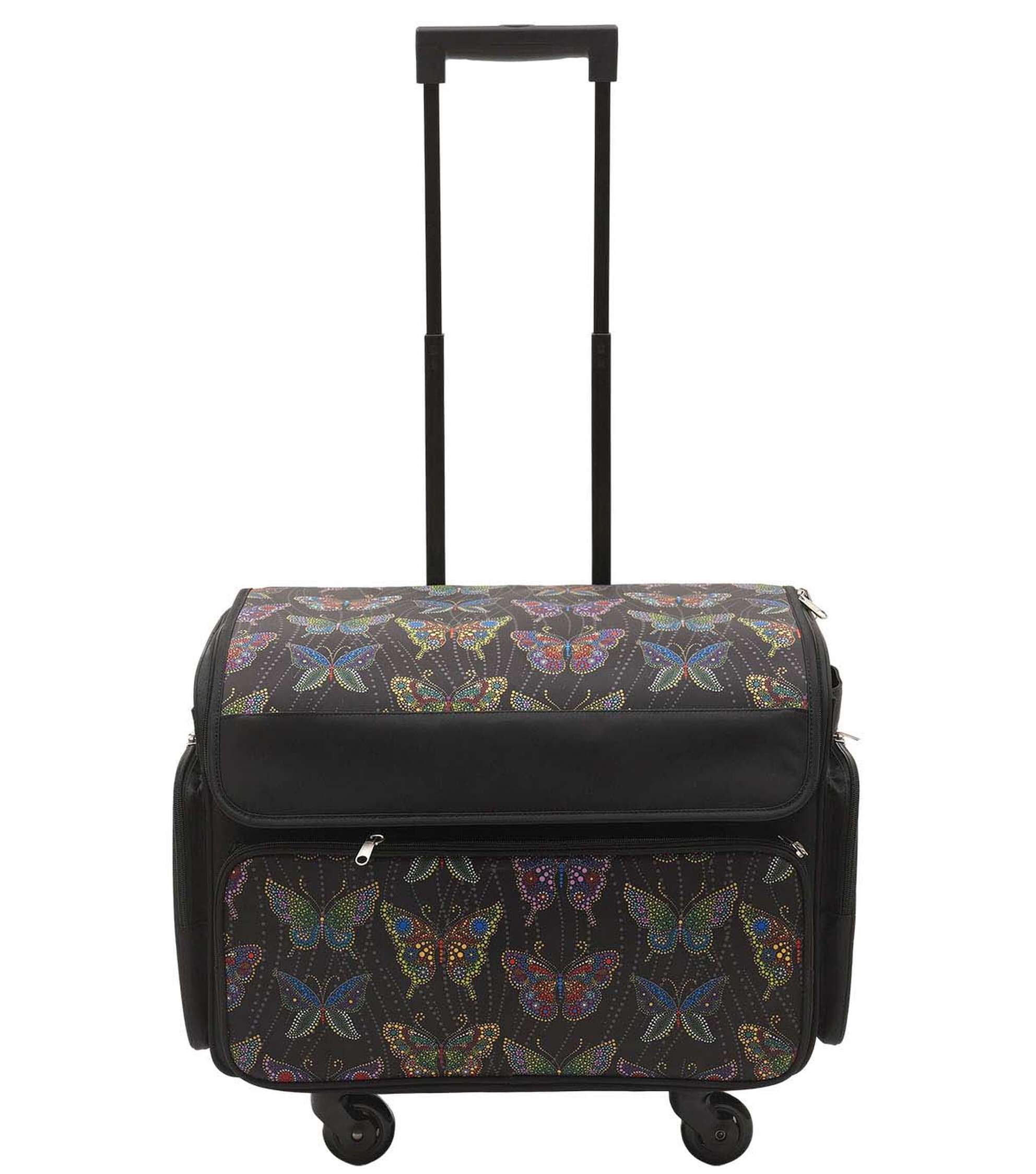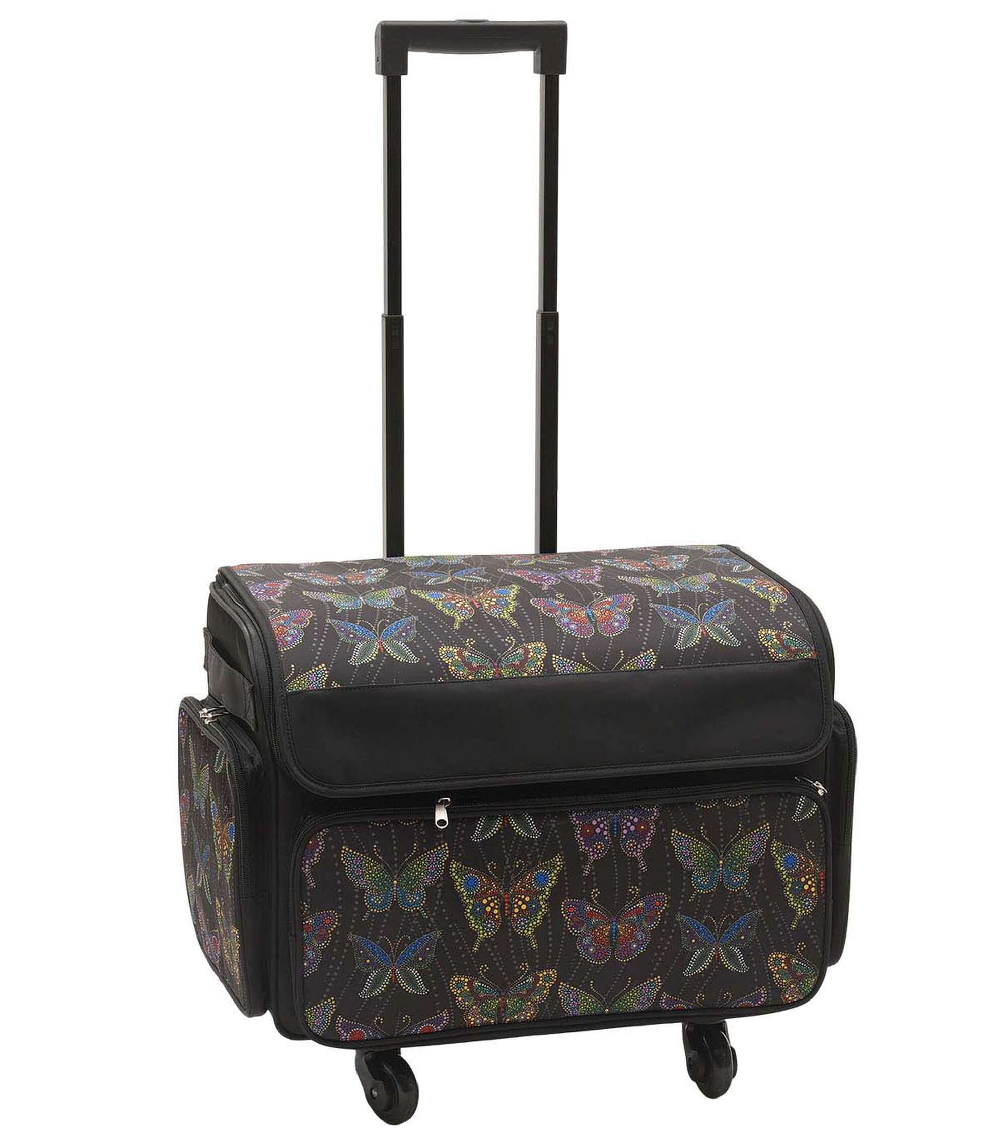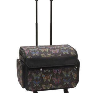 Stay Organized and Stylish with the 13″ x 18″ Butterflies on Black Rolling Sewing Storage Tote by Top Notch