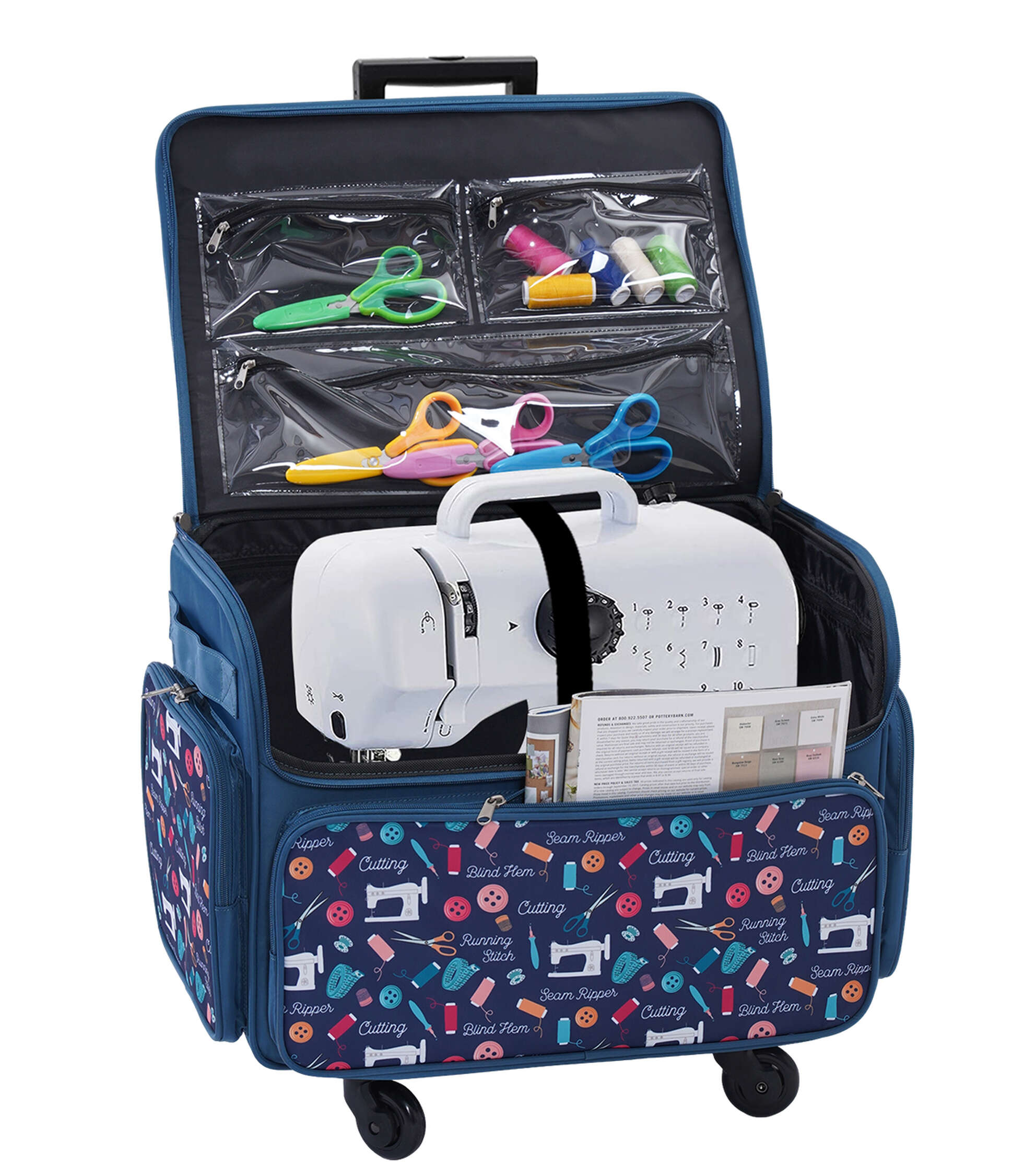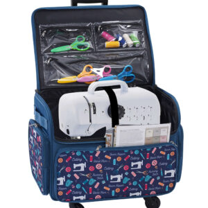 Conveniently Store and Transport Your Sewing Machine with Top Notch’s Dark Blue Rolling Tote