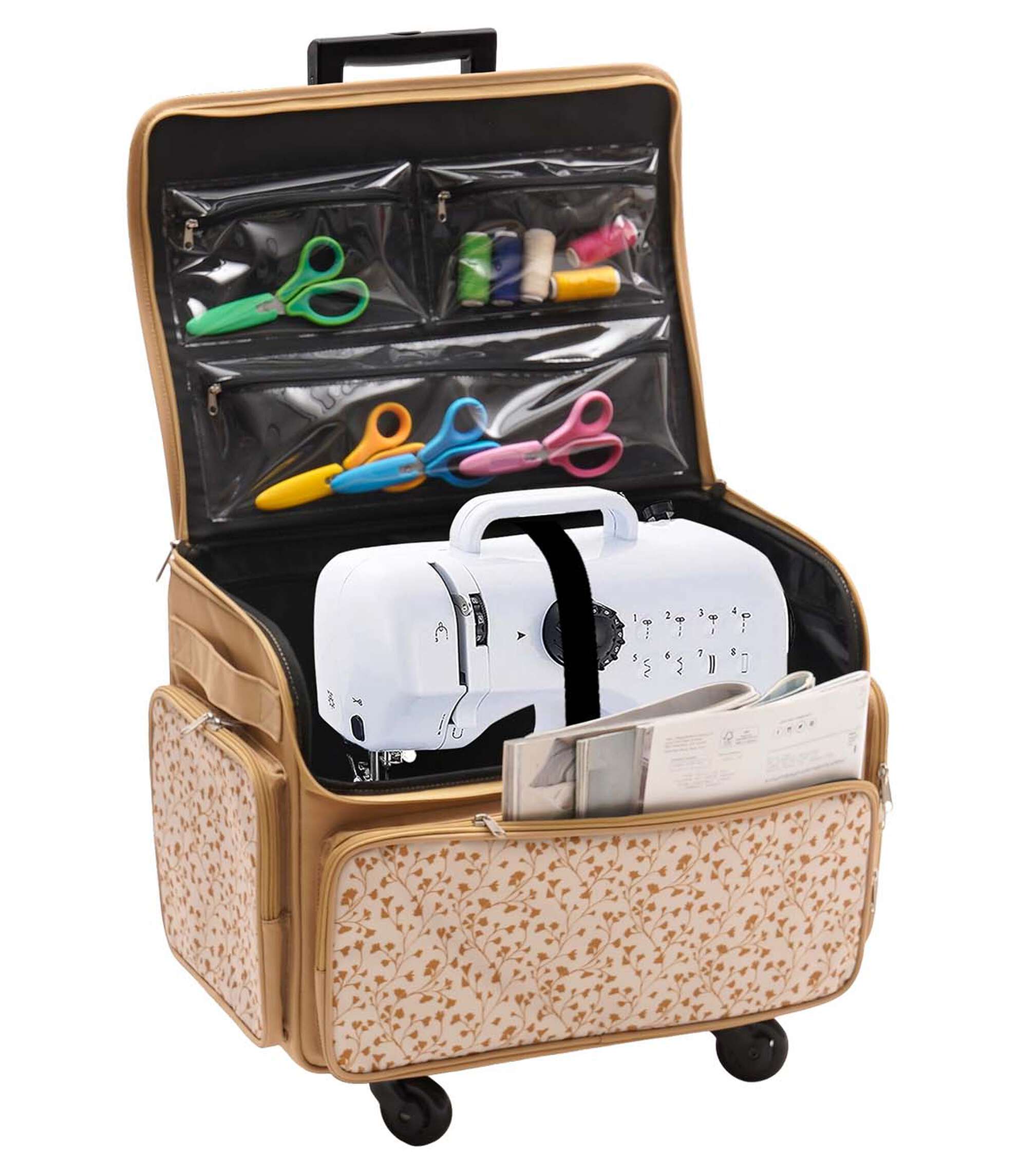Looking for a way to keep your sewing supplies organized and easily accessible? Look no further than the Ivy Golden Floral Rolling Sewing Storage Tote by Top Notch. This tote features a beautiful printed fabric design that is sure to catch the eye of anyone who sees it. And with its four wheels, you can easily roll it from room to room, making it the perfect solution for sewists on the go.