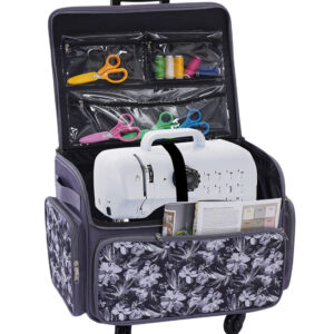 Make your sewing supplies easy to transport with the 13″ x 18″ Purple & Black Floral Rolling Sewing Storage Tote by Top Notch. This tote is perfect for the on-the-go crafter who needs to keep their supplies organized and accessible. The beautiful purple and black floral print adds a touch of style to your crafting experience.
