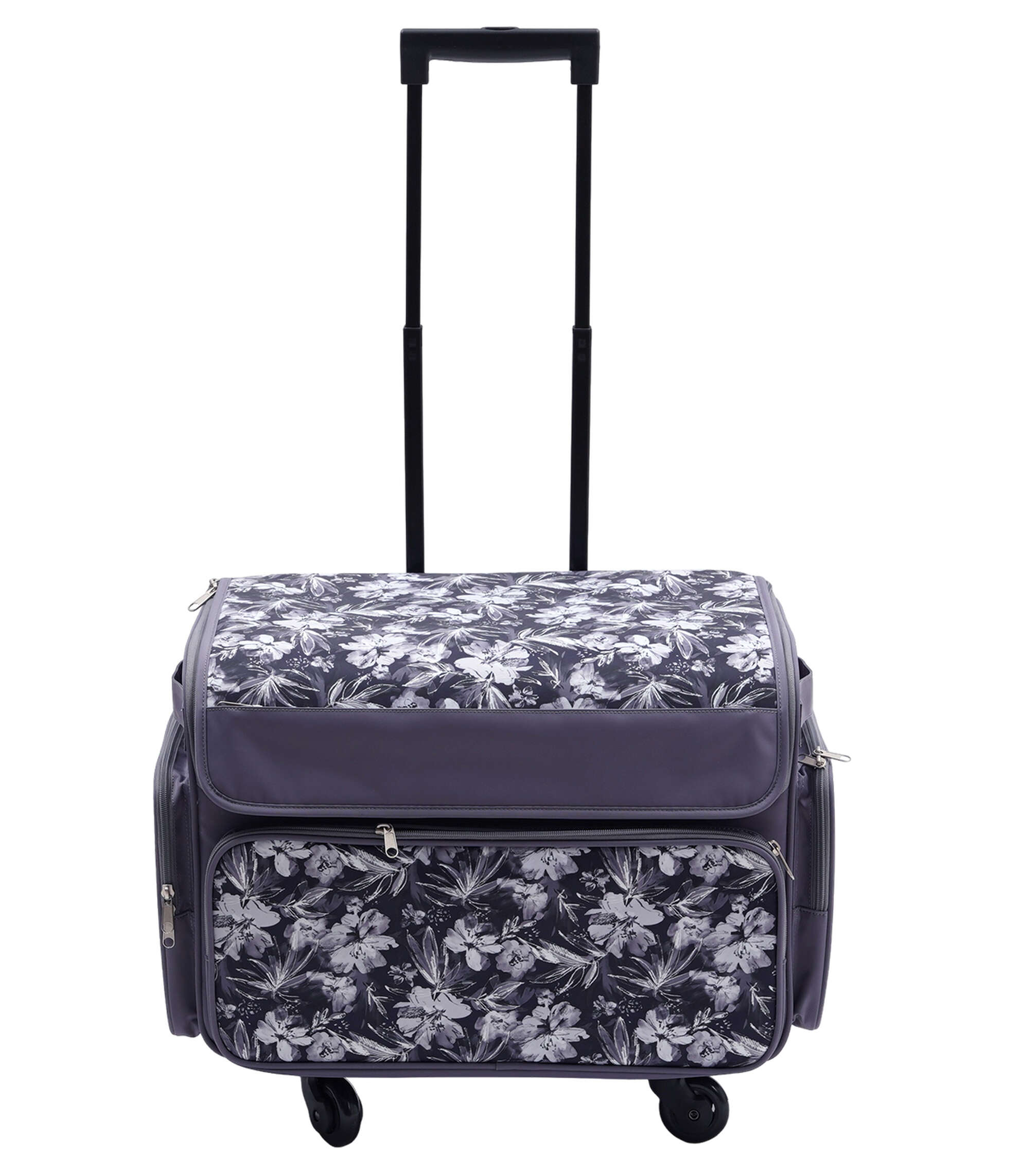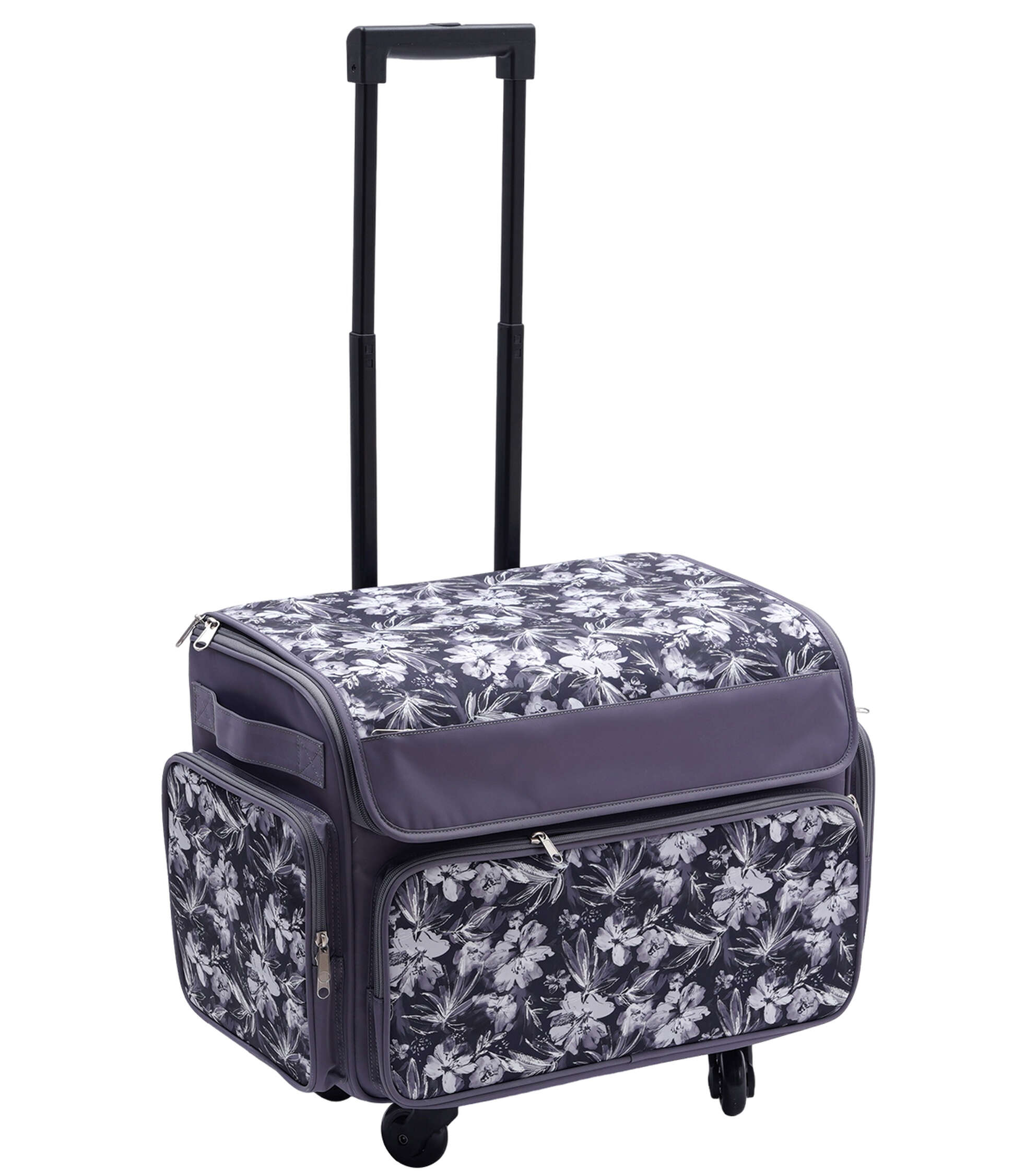 Stay Organized and Stylish with the 13″ x 18″ Purple & Black Floral Rolling Sewing Storage Tote by Top Notch
