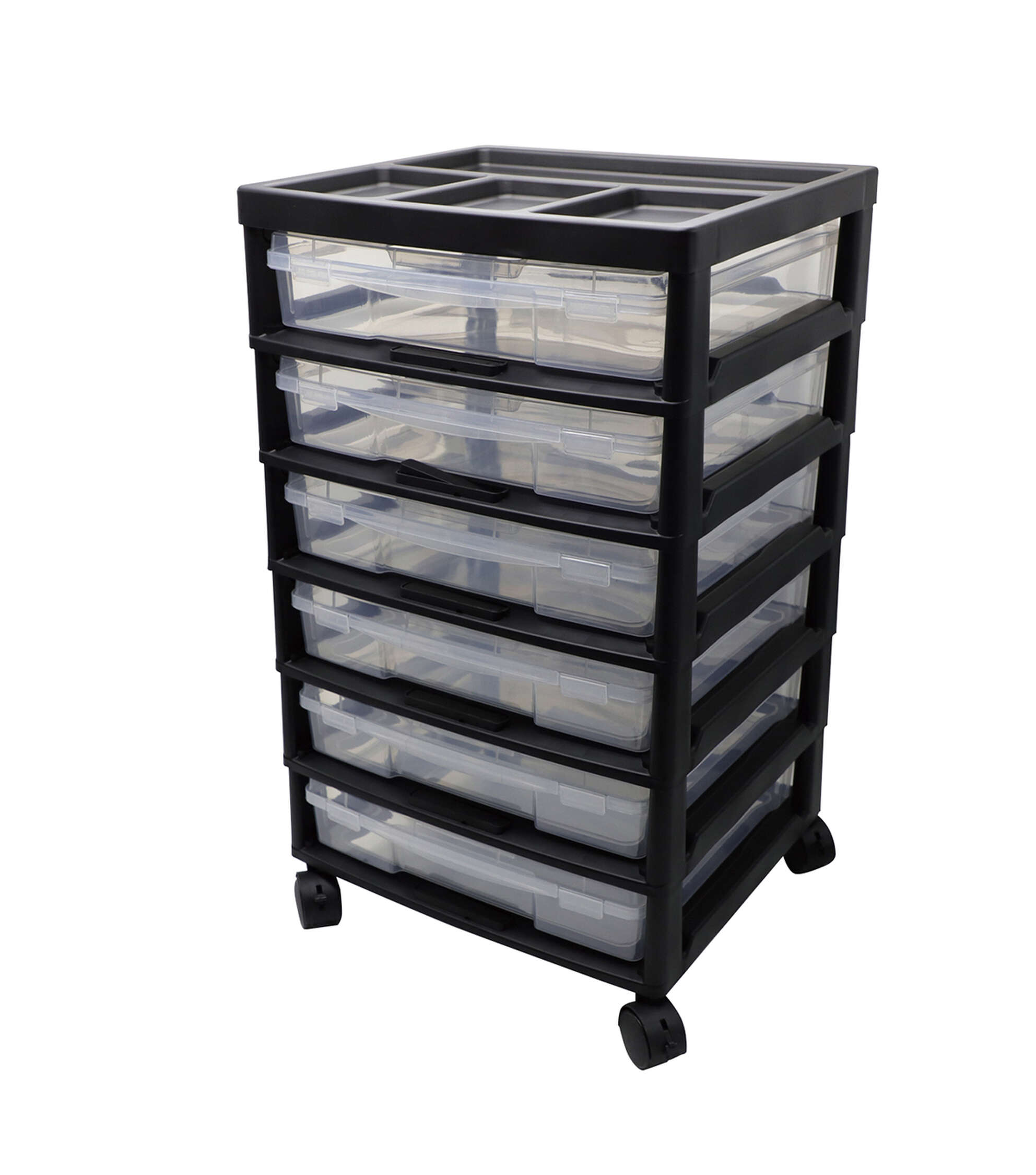 The Black 6 Case Rolling Storage Cart by Top Notch will keep your kid’s craft supplies organized. This tiered, rolling storage cart is designed with a slotted tray on top. It comes with six lidded cases that you can use to keep paints, paintbrushes and stationery safe and away from dust. You can also use the cases to store beads, jewelry findings, embellishments, charms and more.