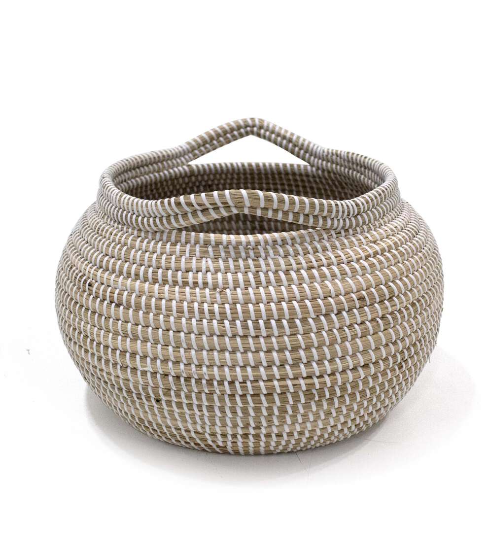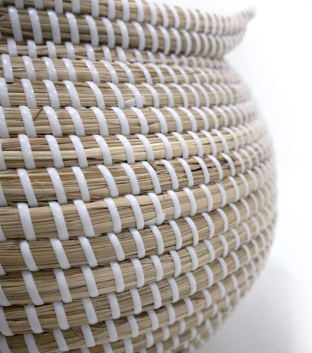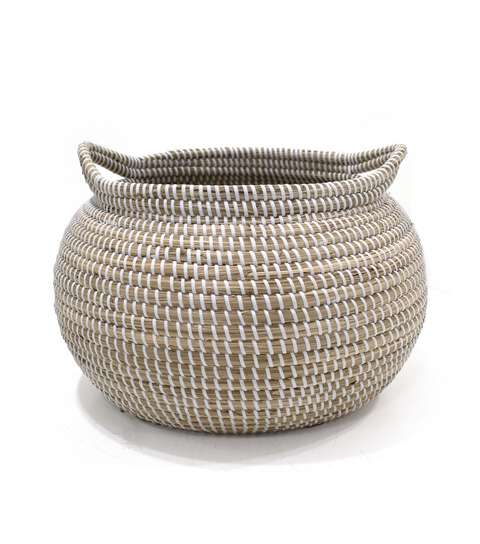 Each basket is carefully made by hand, by crafts men and women in Vietnam, using traditional tools and techniques. In a lovely soft, natural finish, these baskets are made from seagrass and woven with white plastic string. The basket with simple pattern that you can put it in anywhere in your home for storage and decoration as well.