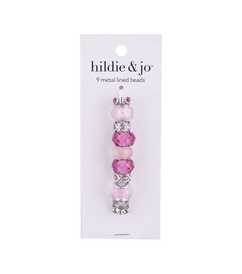 Prettify your jewelry designs by using the attractive hildie & jo Mix & Mingle Metal Lined Glass Beads – Hot Pink. Sporting a pink shade with silver-toned spacers, this beaded string contains nine beads that are made of glass, zinc alloy and brass. You can use them to adorn your bracelets, headbands, necklaces and lots more.