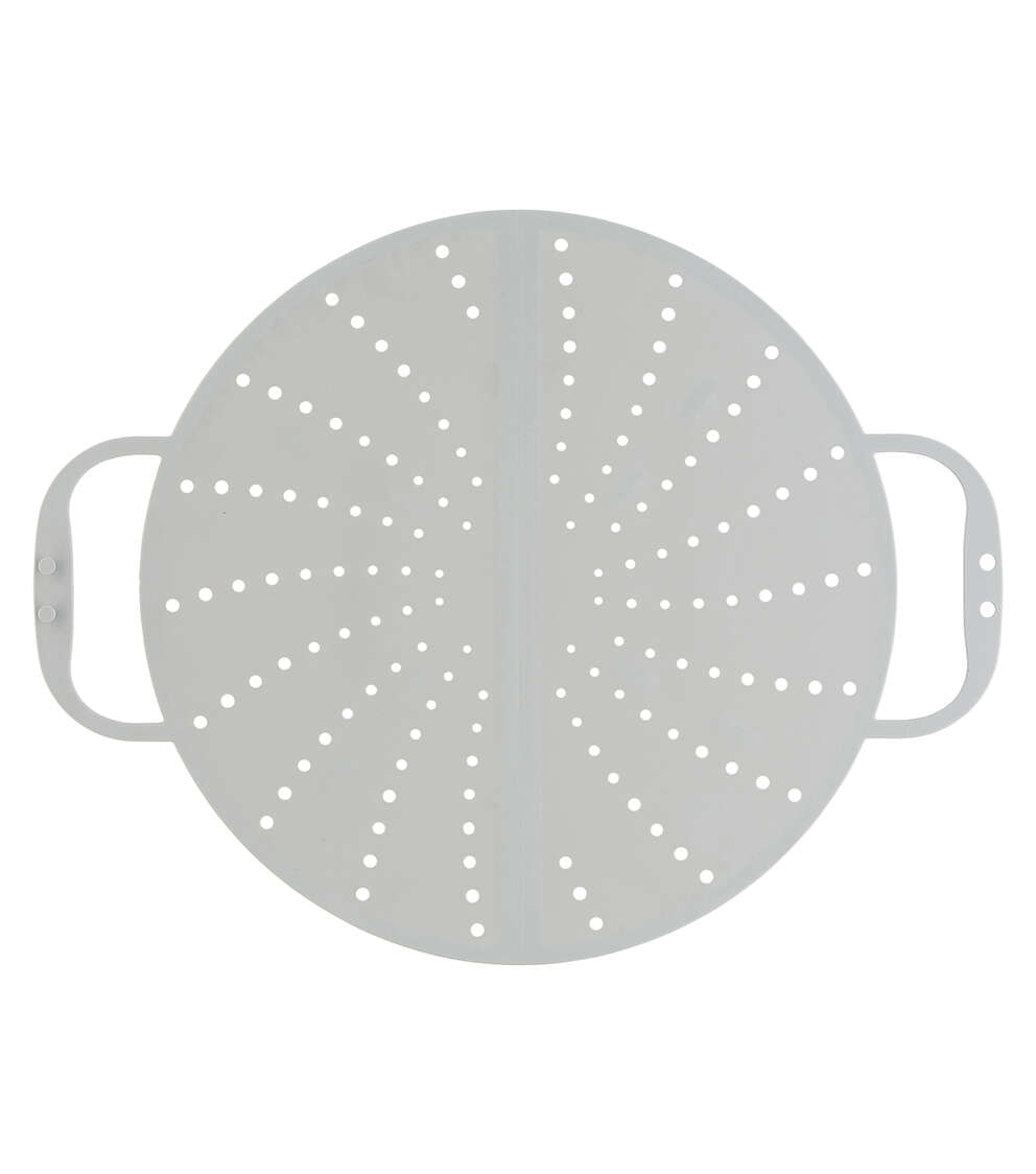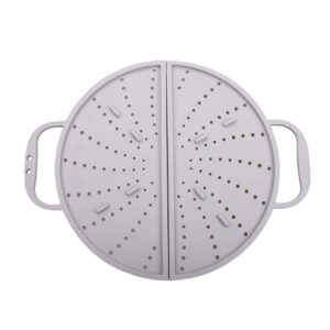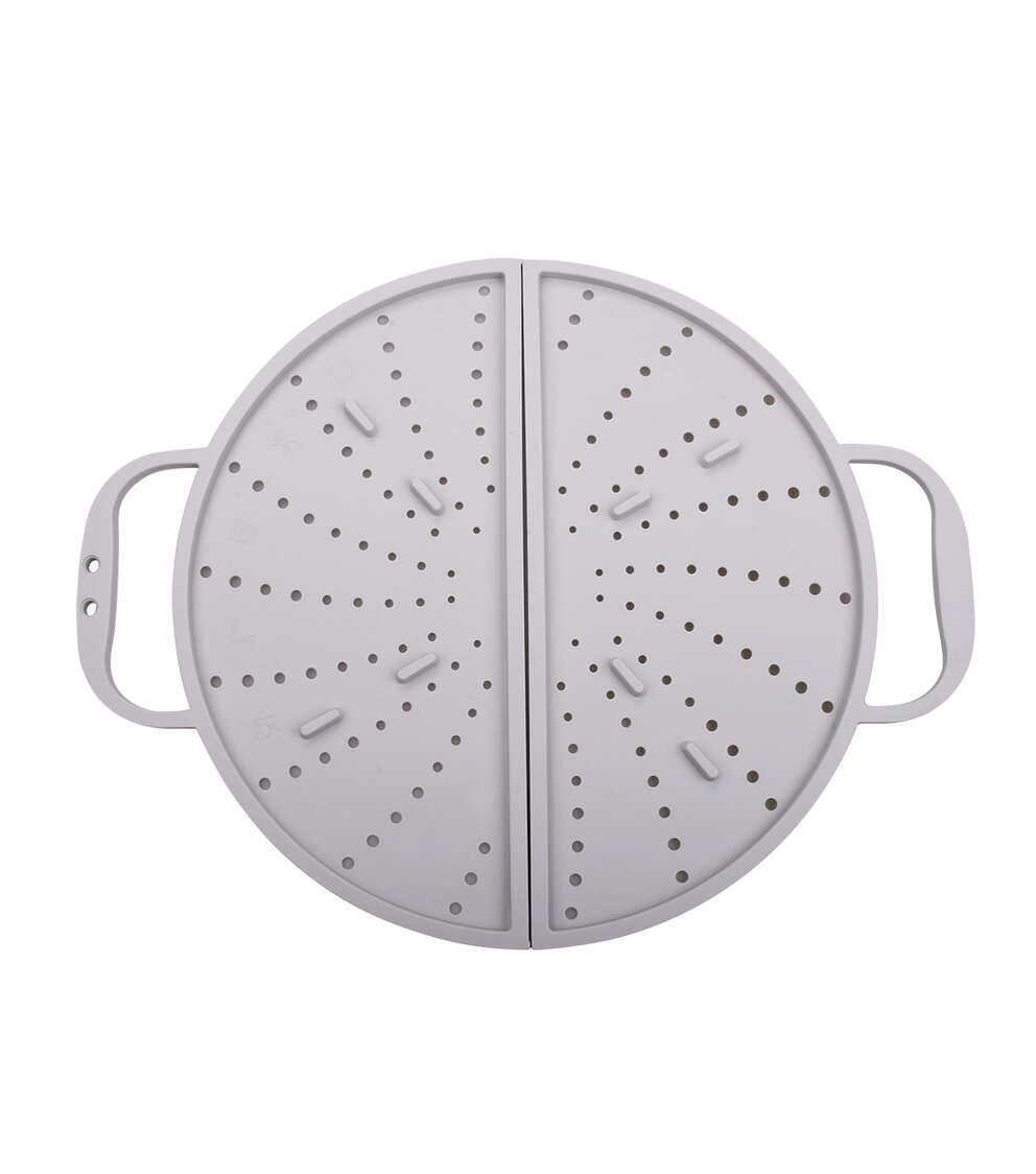 Use this foldable splatter guard to protect your stovetop and counters while cooking. With a 12.5 in. diameter, it will easily fit over most pots and pans. The silicone is easy to clean and reinforced with stainless steel for stability.