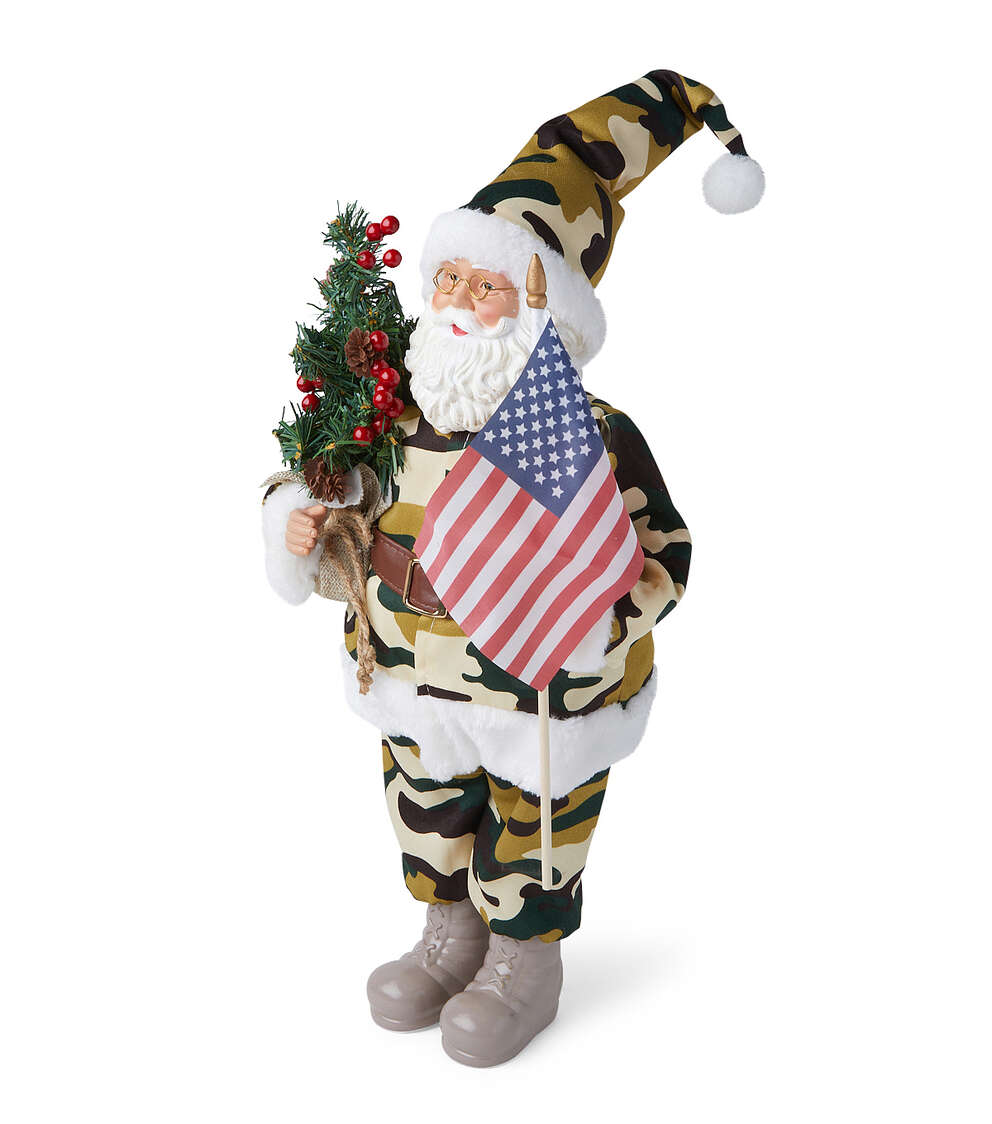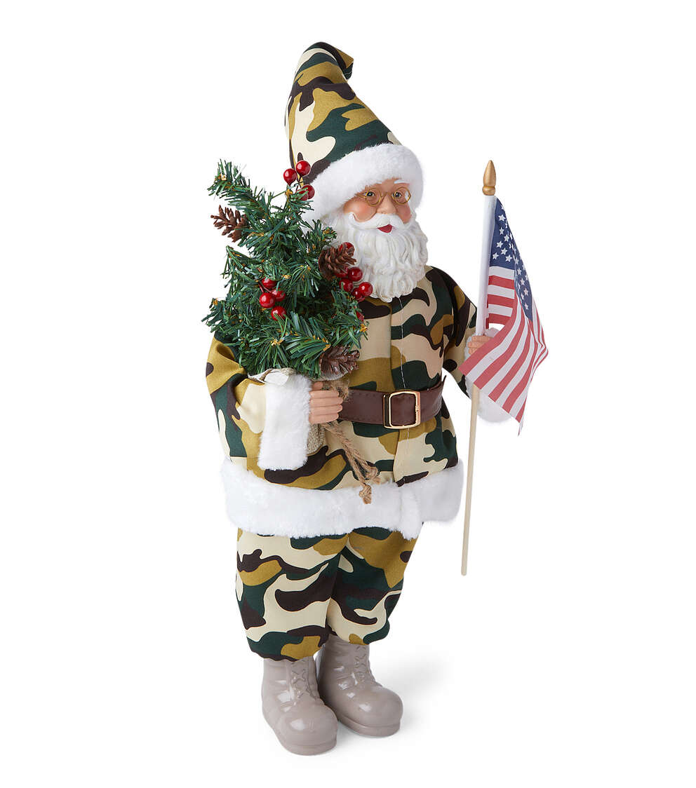 Get into the Holiday Spirit with the 18″ Christmas Military Santa With Flag by Place & Time
