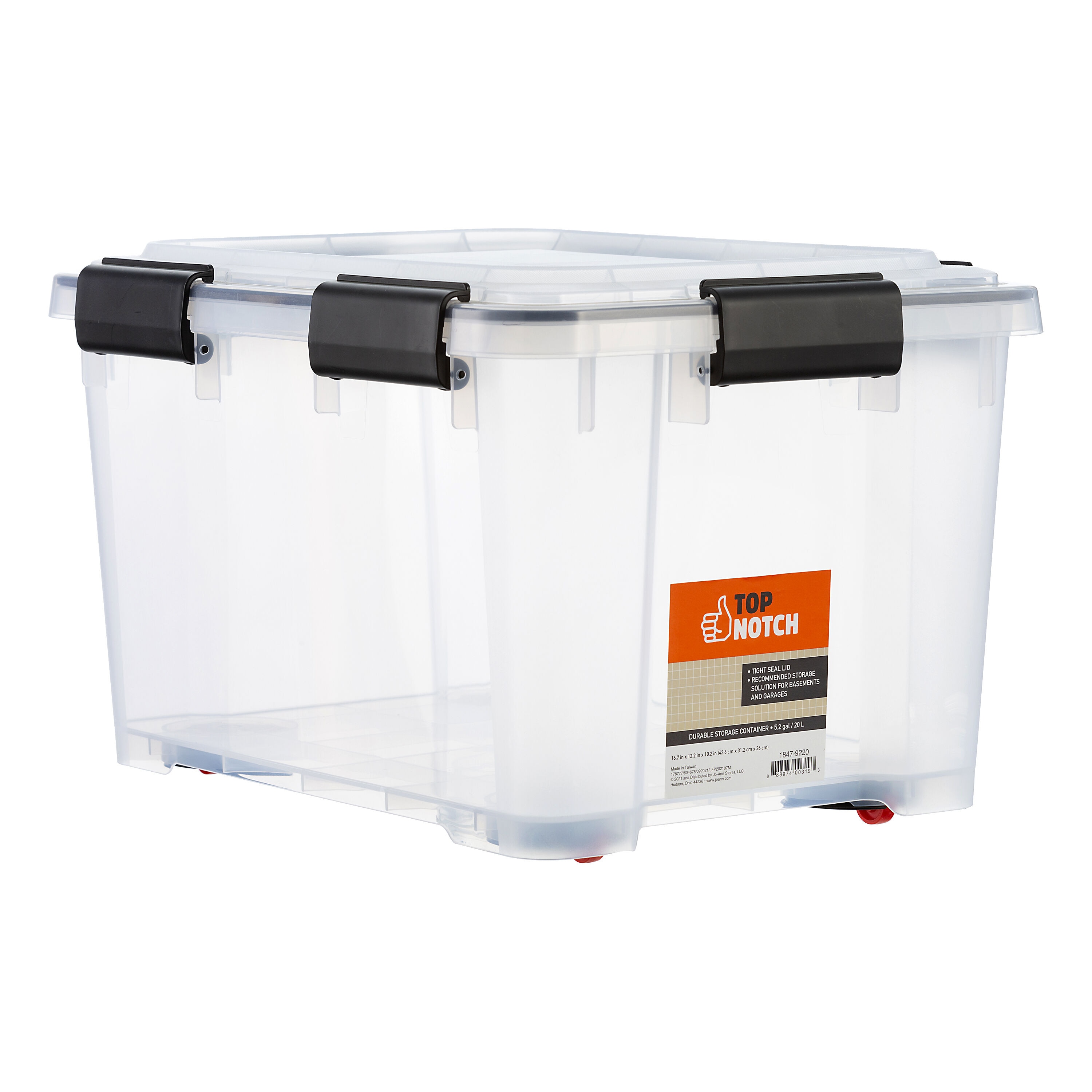 The Top Notch Plastic Durable Storage Box with Lid will help you keep your linen, stationery, office files and more organized. This plastic storage box is clear and comes with a tight-seal lid to keep the contents undamaged and safe from dust. It is designed with wheels for easy portability. You can use it at home or office.