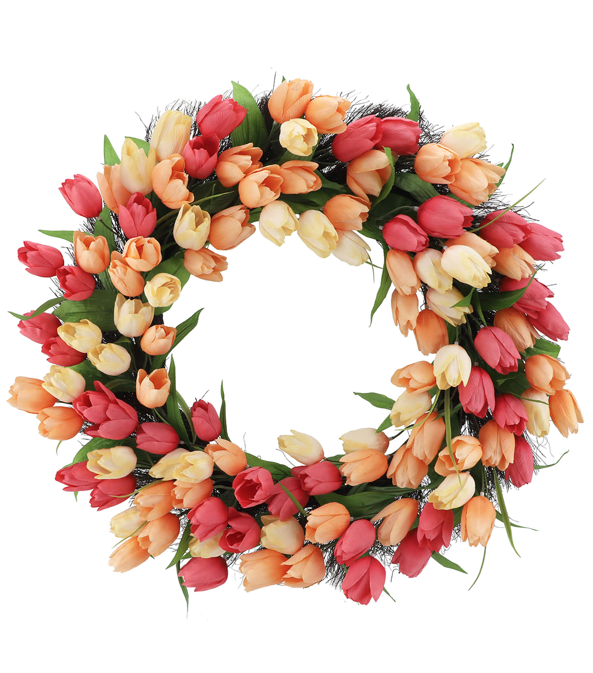 24″ Peach & Red Tulip Wreath by Bloom Room