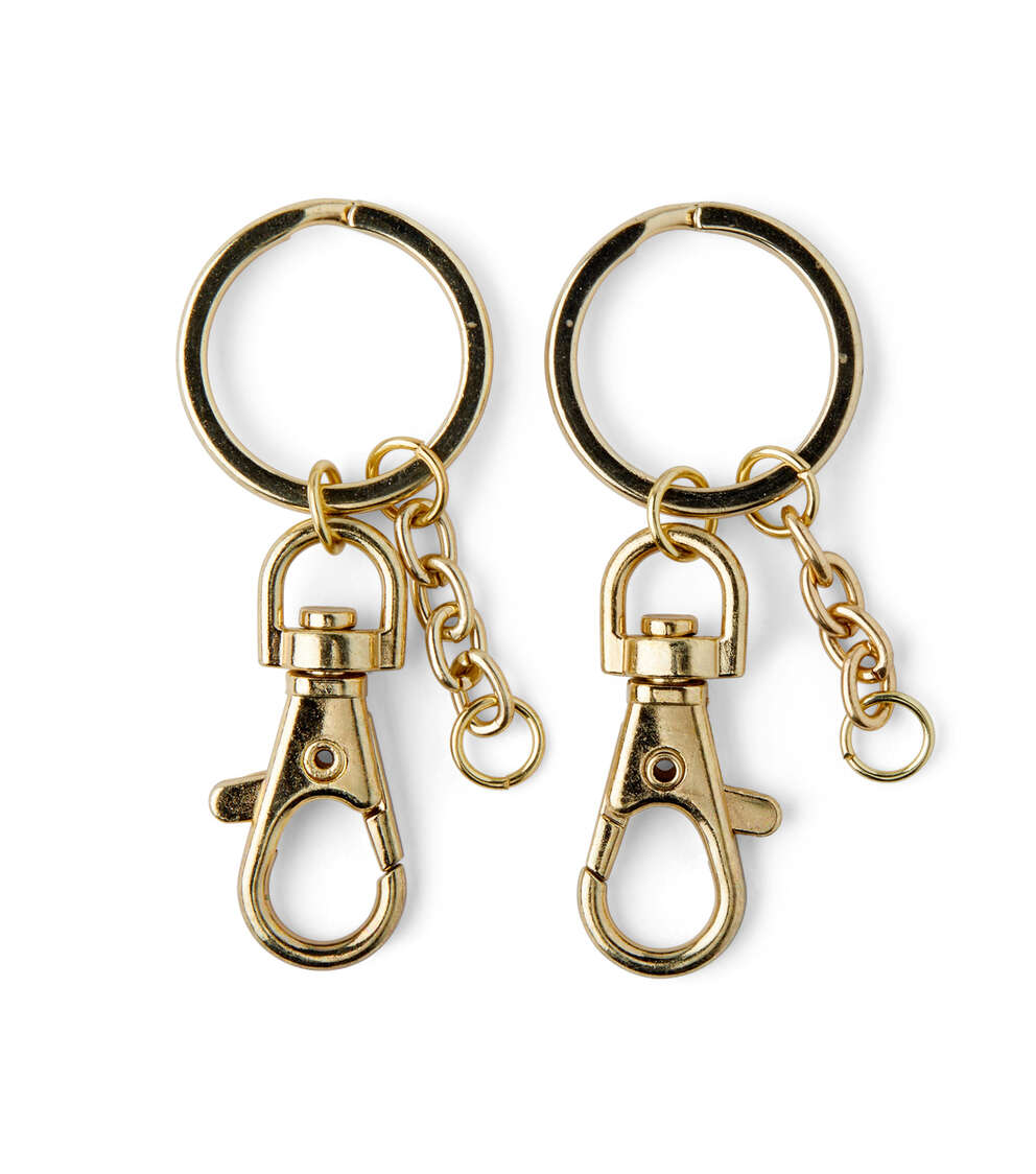 Create interesting DIY craft projects with embellishments like the hildie & jo Symbolize Gold Key Rings. These charms are beautifully shaped into gold key rings for visual flair. For easy attachment, these pieces come with a lobster clasp. Add these charms to any bracelet or decor project to create a lovely impression. Each pack includes two key rings.