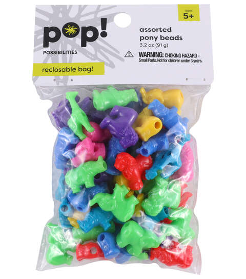 Add the POP! Possibilities Assorted Safari Animal Pony Beads to a budding jewelry maker’s kit. This pack contains assorted pony beads that come in a variety of colors and animal shapes. Use them to design fun and unique bracelets for your little ones. You can also pair them with spacer beads to design necklaces, hair gear and more.