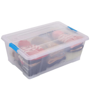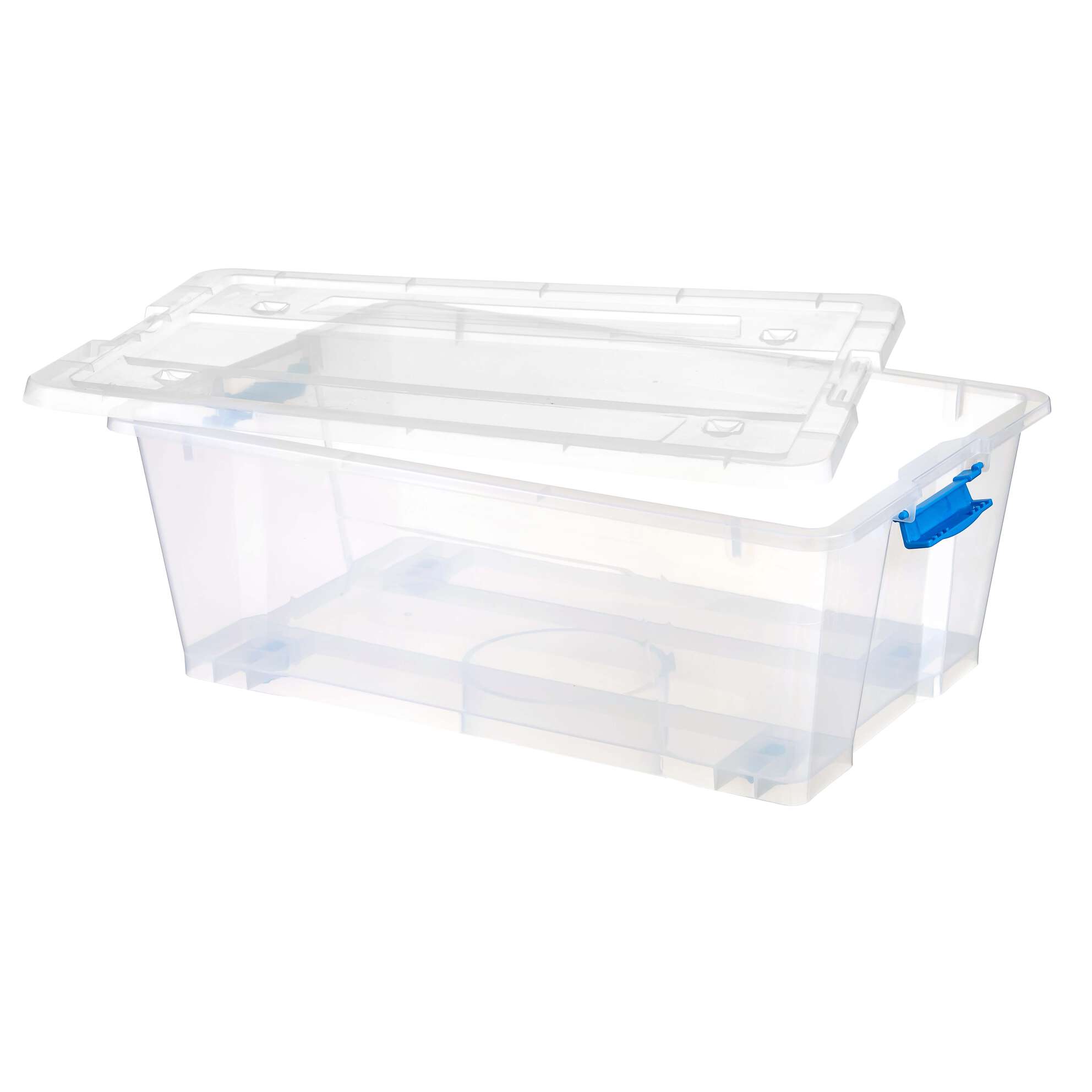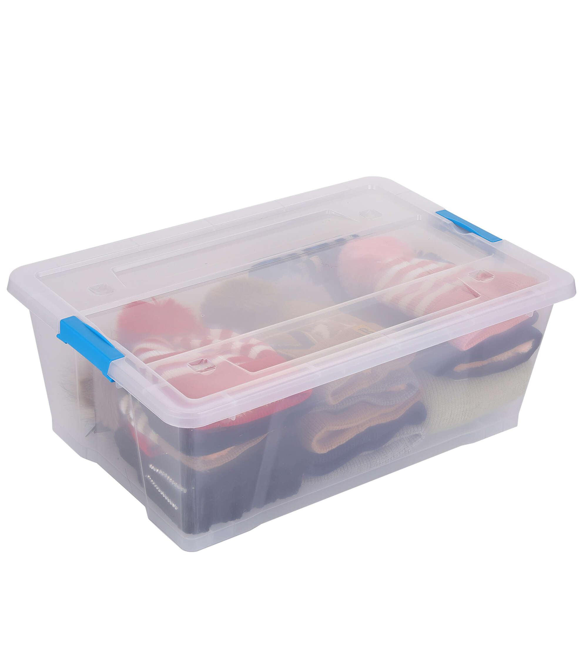The Plastic Storage Box with Snap Lid will help you organize your home or office better. This lidded plastic box is designed with a snap closure to keep the contents secure. It is designed with wheels making it easy to move it from one place to another. You can use it to keep files, books, toiletries, stationery and more.