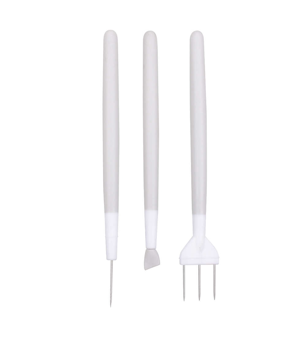 Turn your cookies into beautiful art with this cookie decorating tool set. Use the scriber, scraper, and three-pronged comb to etch, pull, marble, and smooth icing. With these tools, you can create intricate designs that transform ordinary cookies into party centerpieces.