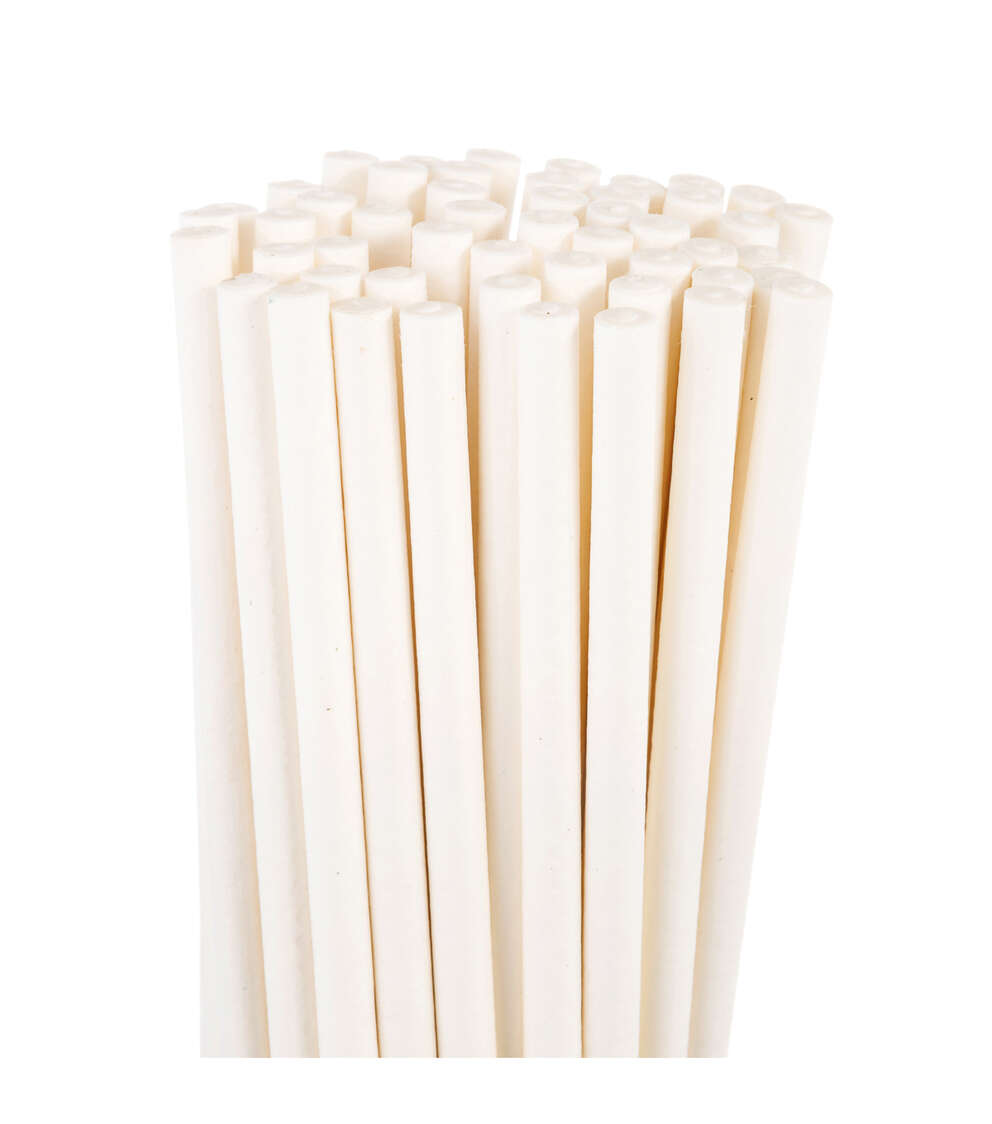 Use these lollipop sticks to make candy, chocolate, cake pops, and more! The food-safe paper is sturdy and will support treats without a problem. The white color is suitable for any occasion.