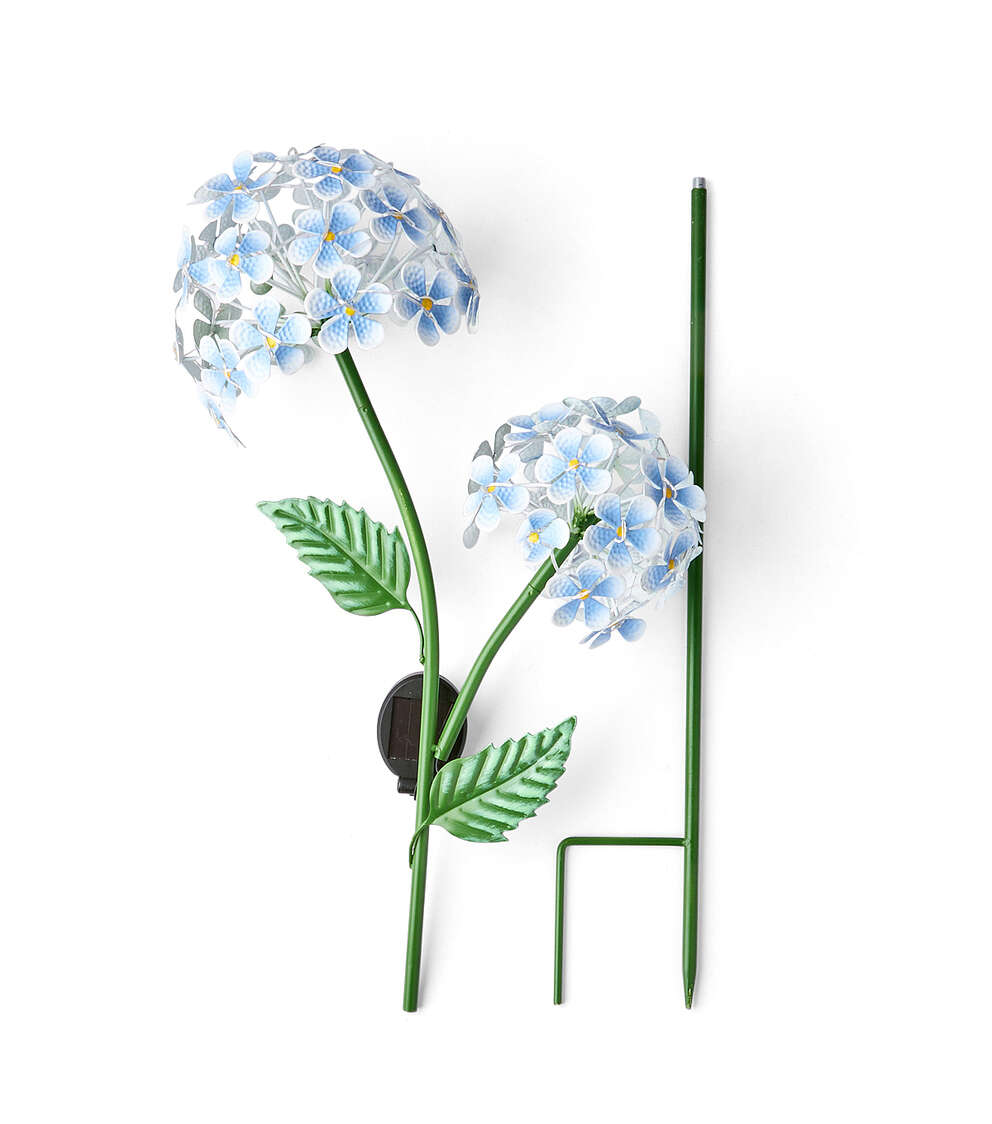 Bring a Pop of Color to Your Garden with the 42″ Blue Metal Hydrangeas Solar Yard Stake by Place & Time