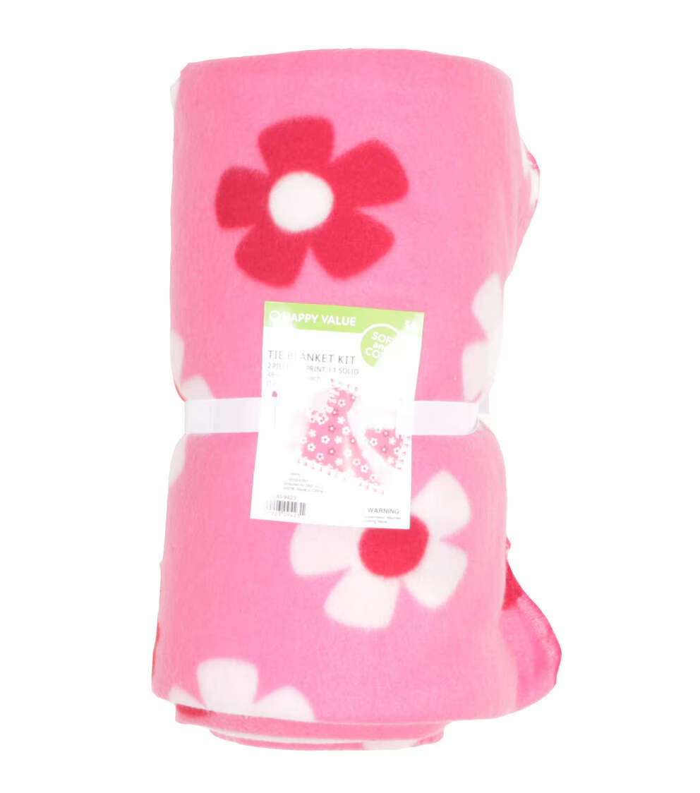 Stay Cozy with the 48″ Wide Ditsy Floral on Pink No Sew Fleece Blanket by Happy Value