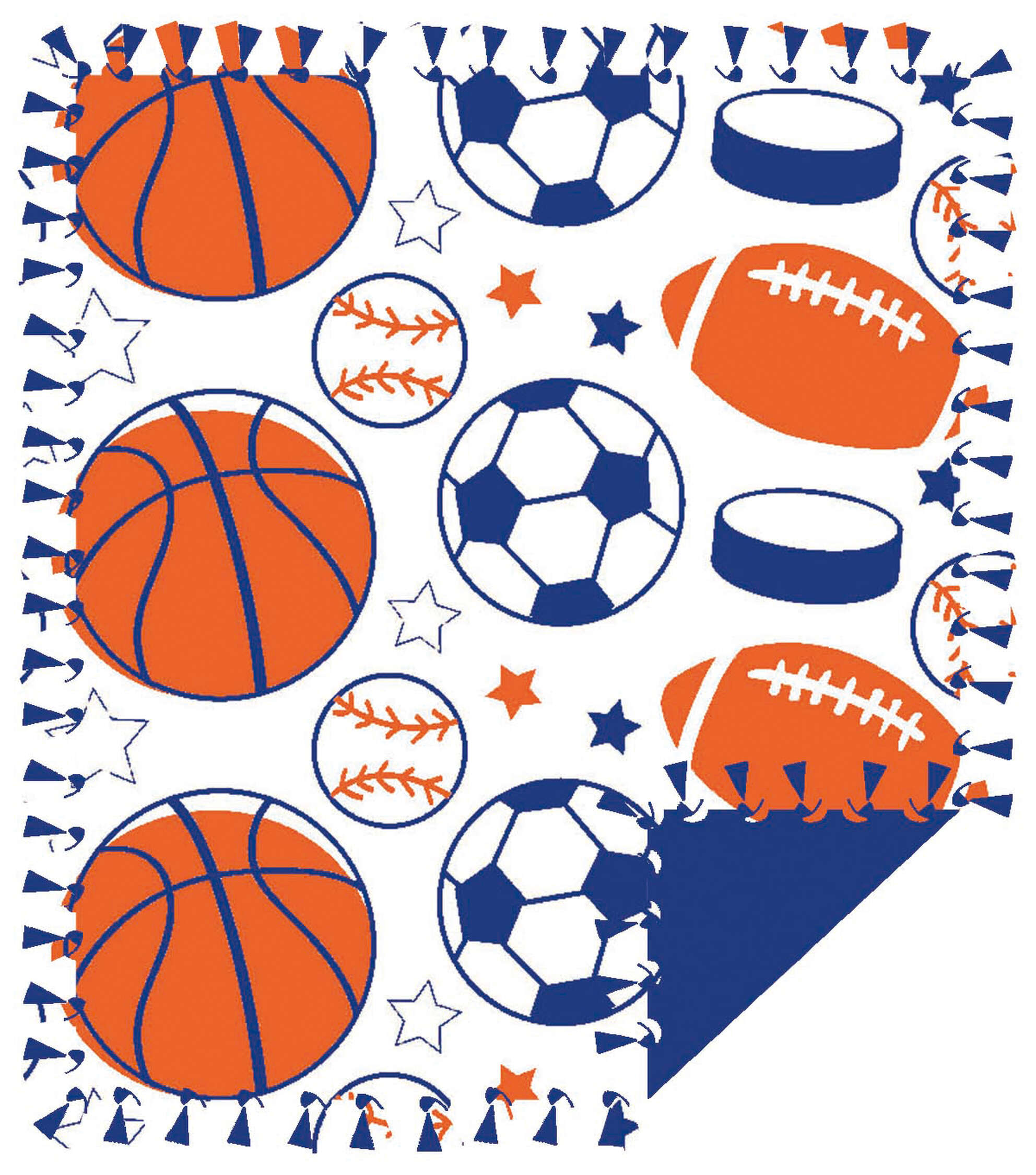 Spread Warmth and Love with the 48″ Wide Orange & Blue Sports No Sew Fleece Blanket by Happy Value