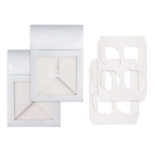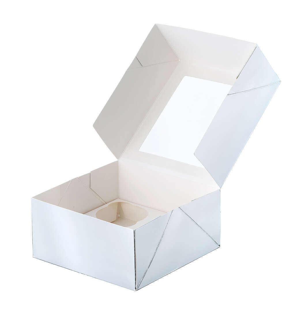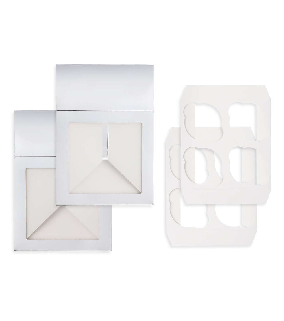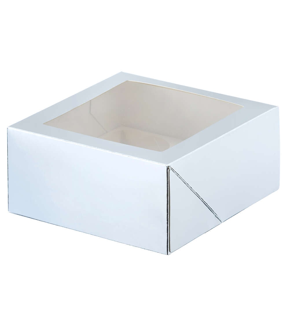 Display your cupcakes in style with the STIR Everyday Windowed Treat Boxes with 4 Square Cavity Inserts. These treat boxes sport a lovely silver tone. They are designed with windowed lids and inserts with four cavities. Use them to keep your baked delicacies safe and looking beautiful during transportation. You can also use them to pack sweet treats for birthday parties, weddings and more.