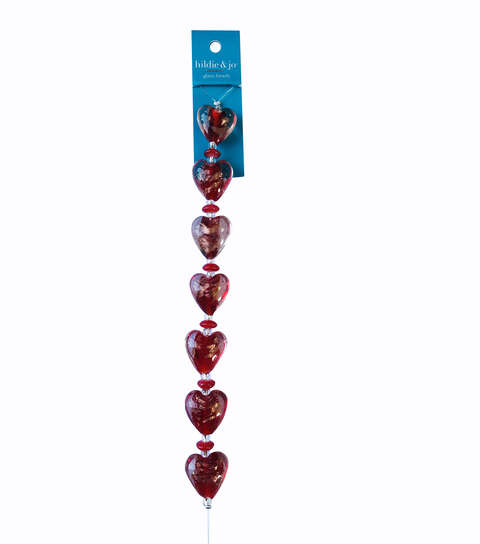 Give your jewelry designs an extra special touch with the hildie & jo Heart Glass Strung Beads – Red. These glass beads are shaped like the heart and sport a lovely red hue. You can pair them with a gold-toned half-heart pendant to create lovely couple bracelets or necklaces for you and your loved one.