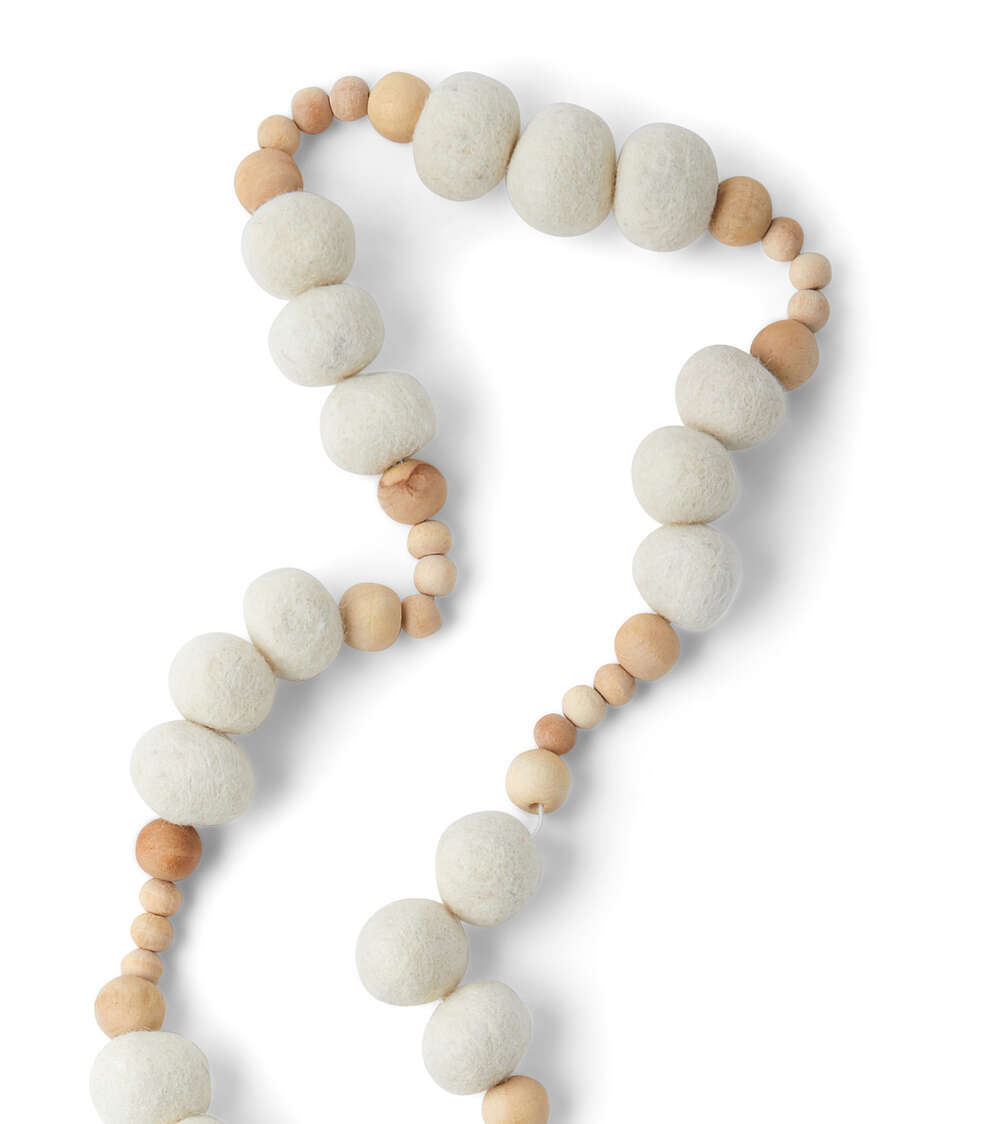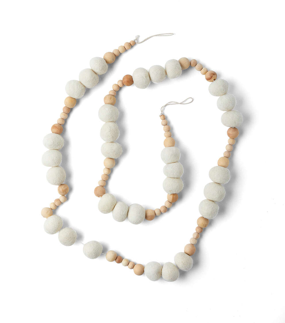 Get Festive with the 72″ Christmas Tan Felt & Wood Ball Garland by Place & Time