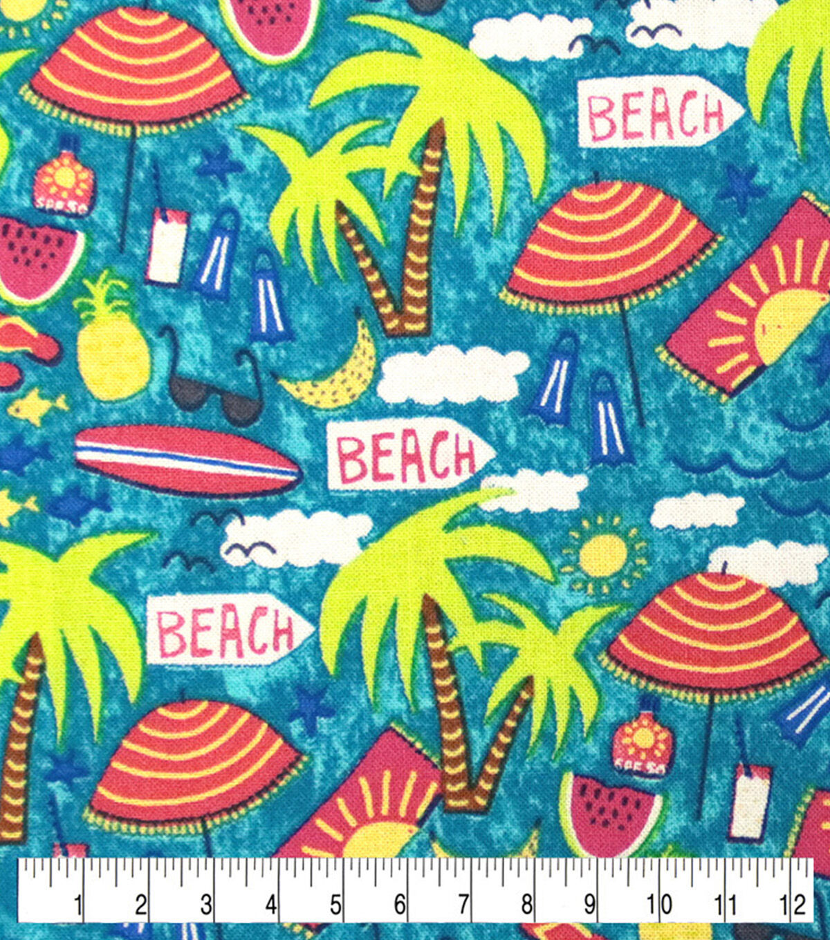 Beach Scene Novelty Cotton Fabric