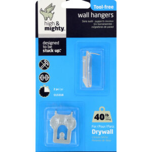 High & Mighty wall hangers are easy to install without a single tool-simply place, push, and hang. With just your thumbs, you can quickly go from inspiration to installation. The hangers come in a variety of weights so there’s a solution for anything you want to hang, no matter how big. Pictures, mirrors, wall decor, or even a gallery wall go up in seconds-and removing or replacing High & Mighty is easily done with a flathead screwdriver or something similar.