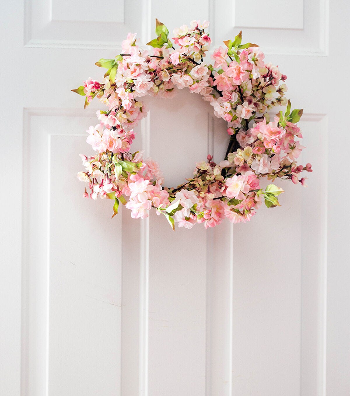 Is it springtime yet? Have the Cherry Blossoms bloomed? That”s the feeling this stunning 24″ Cherry Blossom Wreath will bring forth, no matter what time of year it is. People flock from all over to see the Cherry Blossoms every year, and just one look at this wreath will reveal why. The delicate beauty” the warm feeling” all wrapped up in a circle of goodness. Buy one for your home, and another as a gift.Silk floral arrangements are manufactured using synthetic materials and are well designed and constructed to be life-like in appearance.