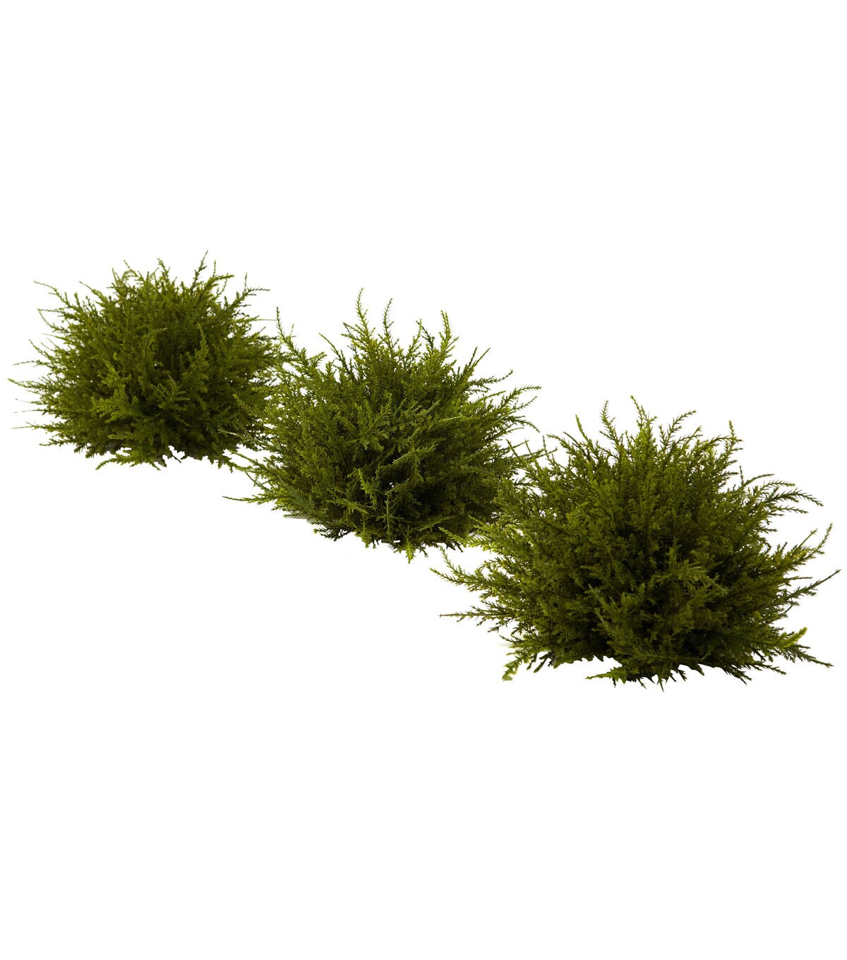 Triple your decorating acumen with this set of three lush Cedar Balls. Combining the intricate texture and evergreen look that is unique to Cedar with the ideal size for accenting, these Cedar Balls will enhance the look of any surface you place them on. Best of all, they’ll stay green and fresh looking forever (just dust them once in a great while.) Buy several sets and turn any room into an evergreen paradise. Silk floral arrangements are manufactured using synthetic materials and are well designed and constructed to be life-like in appearance.