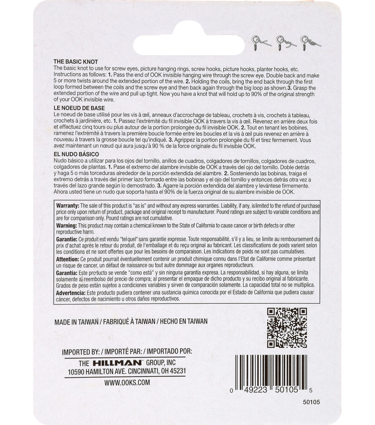 OOK Invisible Hobby Wire is ideal for suspending or hanging items. This invisible wire blends in with your DIY projects or crafts. Invisible wire won’t show and will blend in with your project to add a more finished look. Available in different weight ratings.