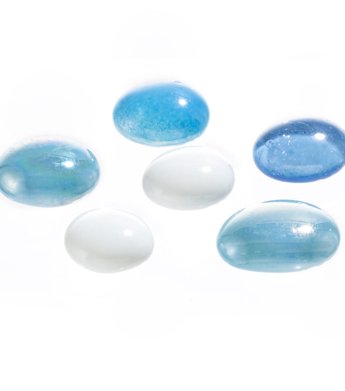 Turn your home decor accents and other creations into a centerpiece with the Bloom Room Glass Gems – Seaside Blue. These gems flaunt a range of colors from deep ocean blue to sea foam white. Fill a hurricane vase with these glossy gems or use them to anchor your flower arrangements in place or use them to add more weight to a vase for stability. The gems add sparkle without distracting from the color of your arrangement, especially when added to fountains or birdbaths. They make the perfect perch for birds when arranged in birdbaths.