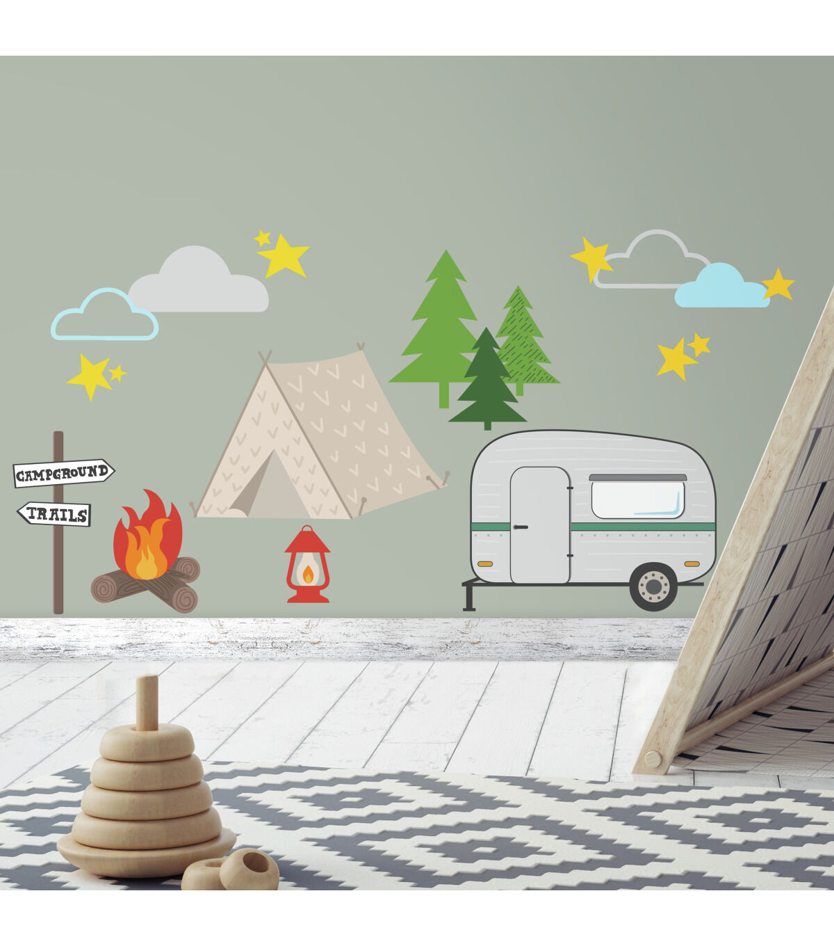 Give walls a unique transformation with Camping Peel and Stick Wall Decals by RoomMates. An innovative way of decorating any room, this set comes with 24 wall decals. Make walls pop in minutes with our fast and easy application process just peel and stick. Created with high quality vinyl, remove and reposition as often as needed leaving walls free of sticky residue. Watch your room transform with RoomMates.