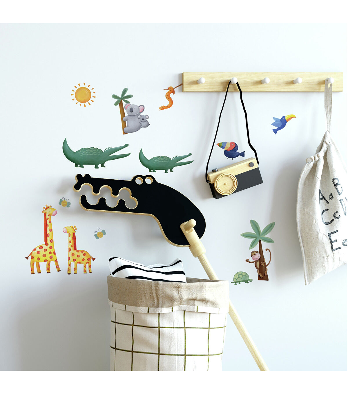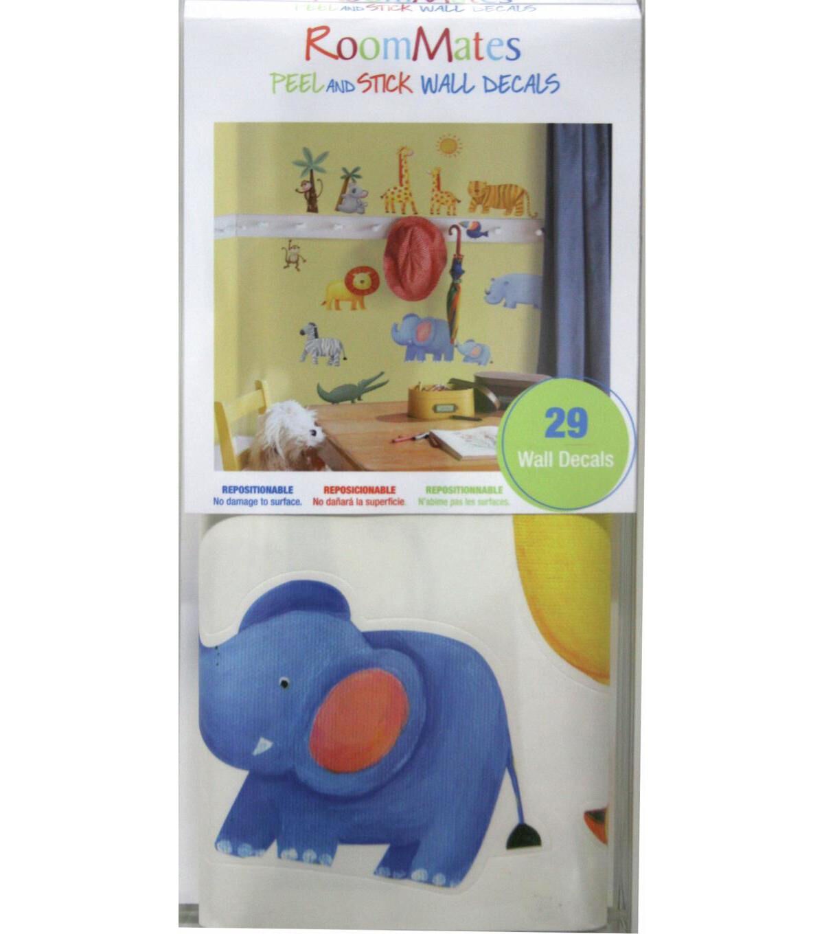 It’s a jungle out there… but a friendly and adorable one! Fun alligators, gentle lions and tigers, funky monkeys, a docile elephant and zebra, colorful giraffes, chunky hippo and rhinos… The whole gang is here, under the glowing sun (with palm trees for shade). Great fun and terrific decor for infants, boys, and girls.