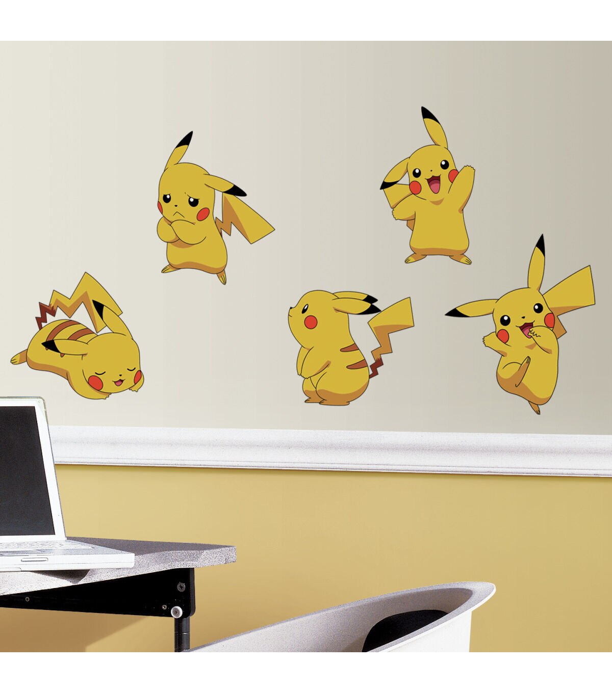 Walls instantly come to life with Pokemon Pikachu Peel and Stick Wall Decals by RoomMates. Complete with 12 wall decals, spread this decorative theme throughout an entire room in seconds. The application process is fast and easy. Simply peel and stick decals to any smooth, flat surface. Remove, reposition, and reuse as often as needed while keeping walls and decals completely safe. Recreate this look in your room today with RoomMates.