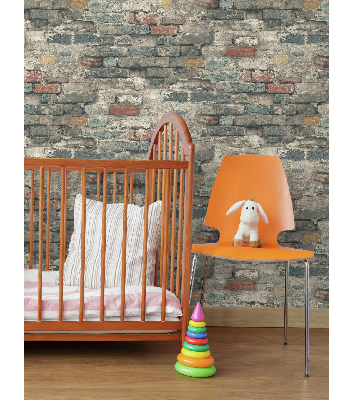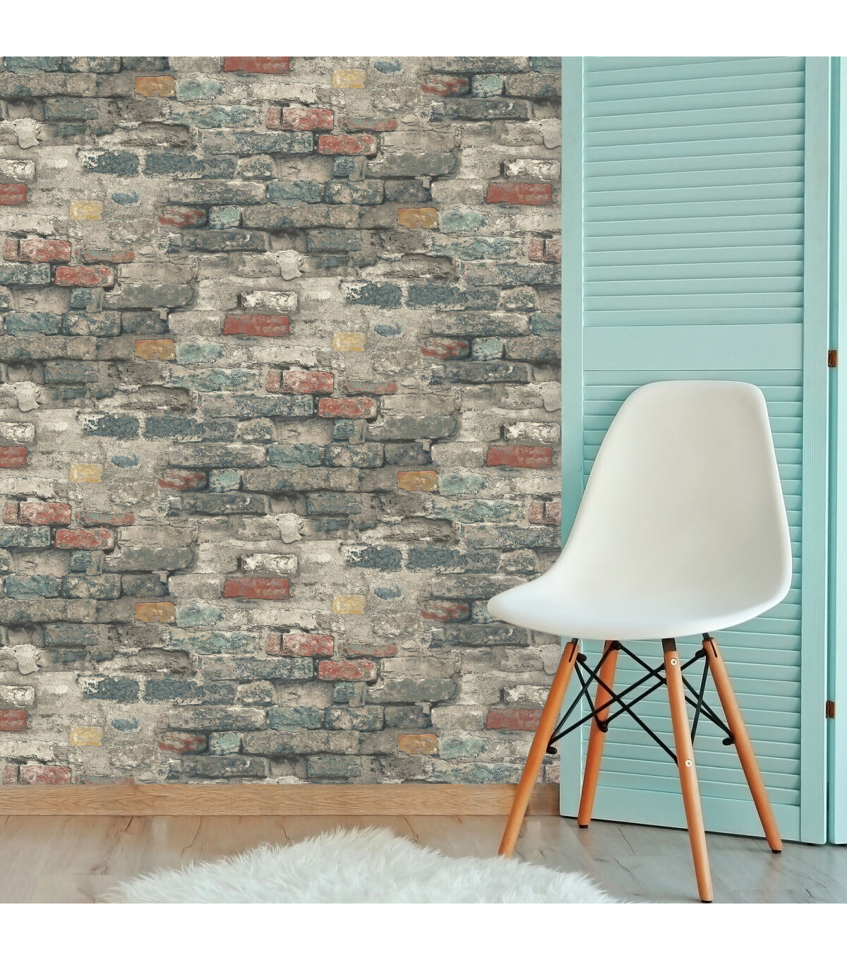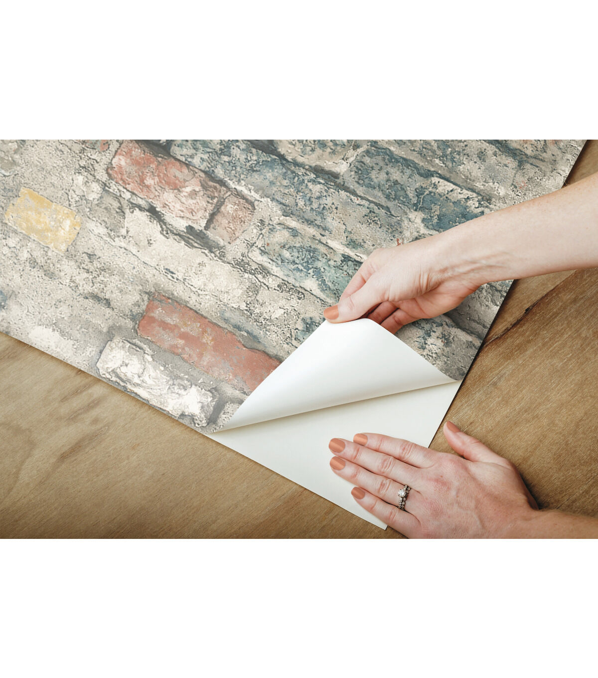 Give walls an edgy transformation with Brick Alley Peel and Stick Wallpaper by RoomMates. A temporary decorating solution, Brick Alley Peel and Stick Wallpaper gives walls a textured look providing a designer loft feel with very little effort. Modern and warm, capture the look of exposed brick in minutes with our fast peel and stick technology. Simply peel from the backing and install on any smooth flat surface of your choice. From walls to furniture, Peel and Stick Wallpaper is the perfect DIY decorating tool. Guaranteed removable, it?s Brick Alley Peel and Stick Wallpaper at its best.