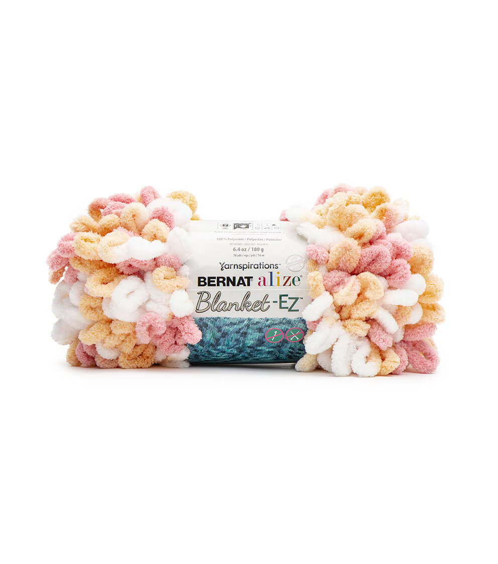 Time to get crafty with Bernat Alize Blanket-EZ! This yarn features unique preformed loops. With no needles or hooks required, Blanket-EZ projects are completed faster and easier than traditional knitting. EZ Knitting handles the first step of stitching for you so that your projects are stunning and are completed in a fraction of the time that knitting with needles take. The ultra-soft, microfiber, chenille is perfect for blankets, pillows, and even cowls! Anyone can master EZ knitting. Everyone can get the immediate satisfaction of quality handmade projects, faster and easier than ever. Welcome to EZ knitting with Blanket-EZ! Check out the video to learn how to EZ knit.