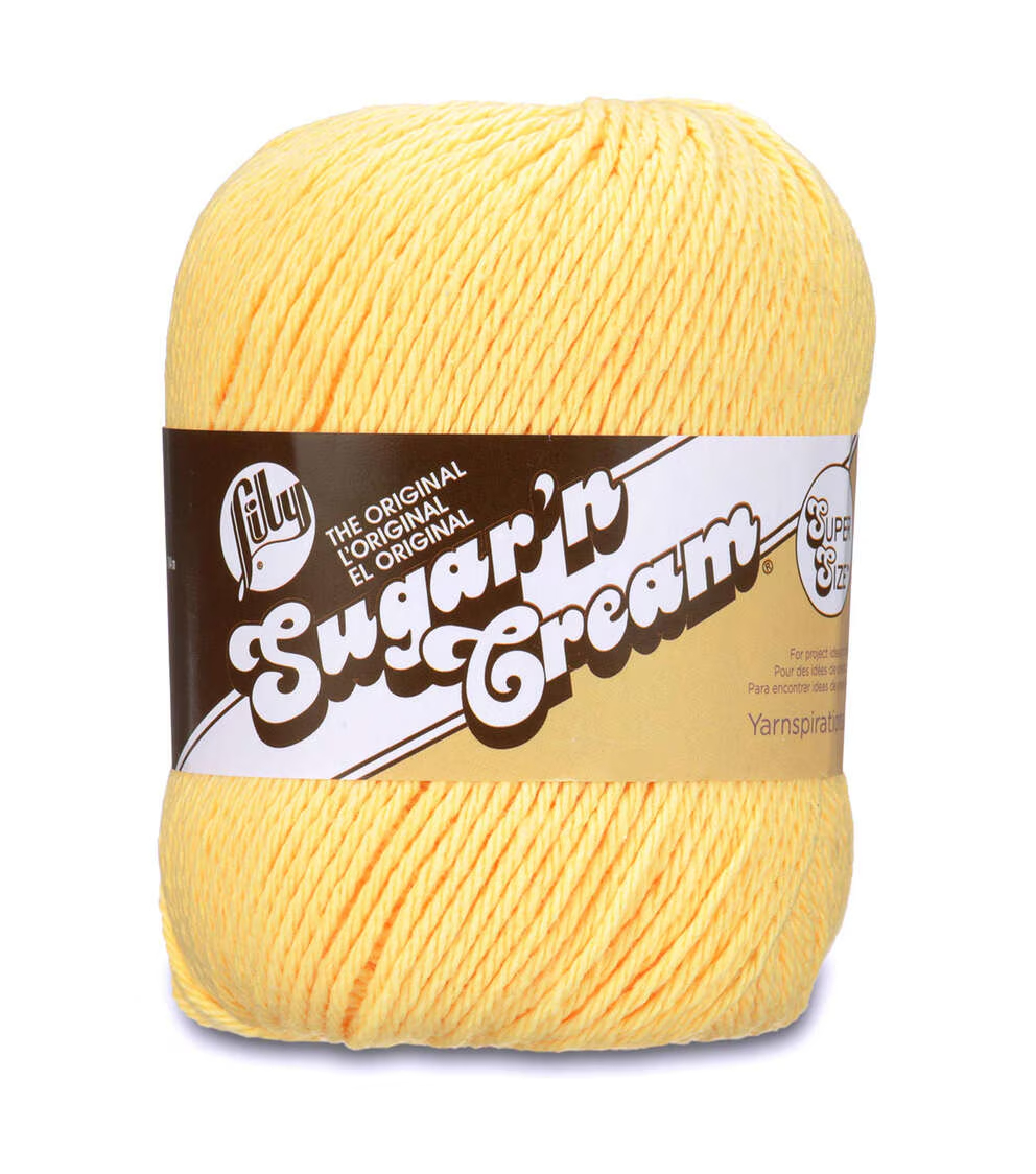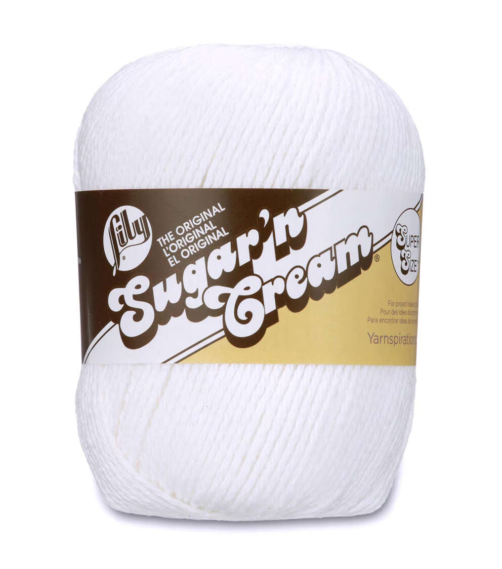 Lily Sugar’n Cream Super Size Cotton yarn is a natural, 100% USA-grown cotton yarn. The perfect choice for your knit and crochet home decor needs. Lily Sugar’n Cream is a versatile worsted weight yarn, that’s great for small projects like dishcloths and potholders, to home decor staples like afghans! Available in a wide variety of shades, including neutrals, brights, and pastels. Conveniently machine washable and dryable for easy care.