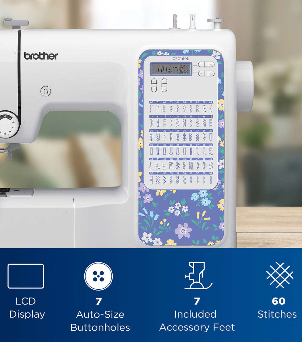 - 60 Unique Built-in Stitches: The Brother CP2160L sewing machine includes 60 built-in stitches, including utility, decorative, heirloom stitch functions, and seven auto-size buttonholes.