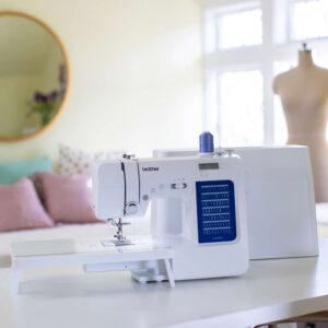 The CS7000X sewing and quilting machine is a great option for beginners and experienced sewers alike with a plethora of convenient features. An LCD display, improved automatic needle threader, large needle-to-arm workspace, a smaller free arm for sewing tight projects, and a fixed needle bar for stability, highlight some of the machine’s easy-to-use components. With 70 built-in sewing stitches, including decorative stitches, quilting stitches, and seven styles of one-step, auto-size buttonholes, the possibilities are endless. The CS7000X is a great value, including sewing and quilting accessories right in the box, such as 10 presser feet plus a quilt guide. Also included is the detachable wide table that is perfect for larger quilting projects and a hard-protective case for comfortable portability and class use.