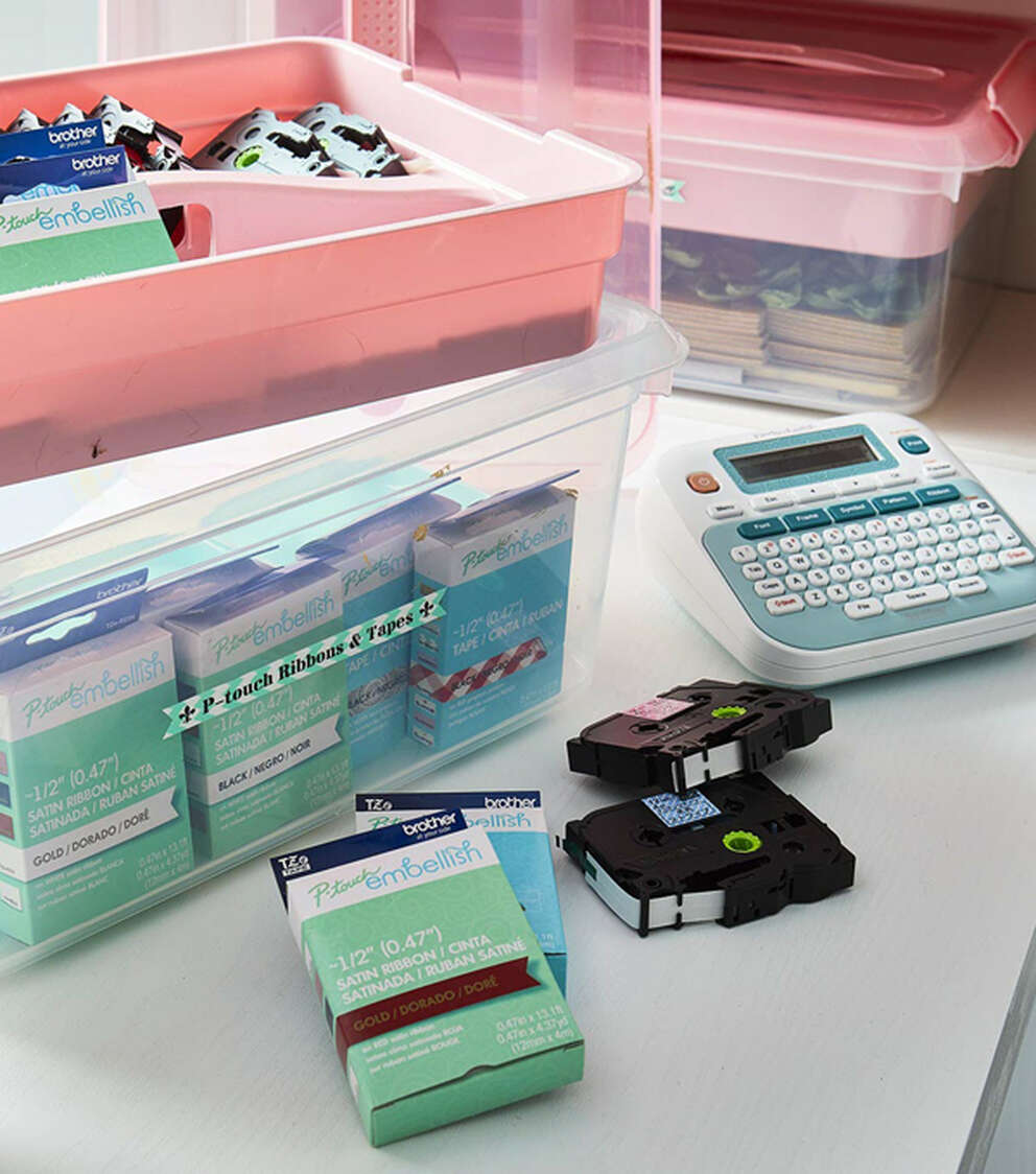 Personalize ribbons and tapes with the Brother P-touch Embellish Ribbon & Tape Printer. Choose from a wide range of fonts, borders, symbols and patterns to make your printed message look attractive. This tape and ribbon printer has easy-to-use, one-touch keys for quick formatting. Use the printed tape or ribbons to adorn your gift packages, scrapbooks, journals, albums, party invites and more. This kit includes one ribbon and tape printer with pre-designed templates, 14 fonts, 94 frames and over 400 plus symbols, 25 patterns, one touch keys for easy formatting, ribbon and one user’s guide. It requires six AAA Alkaline batteries or the Brother AC adapter, each sold separately.