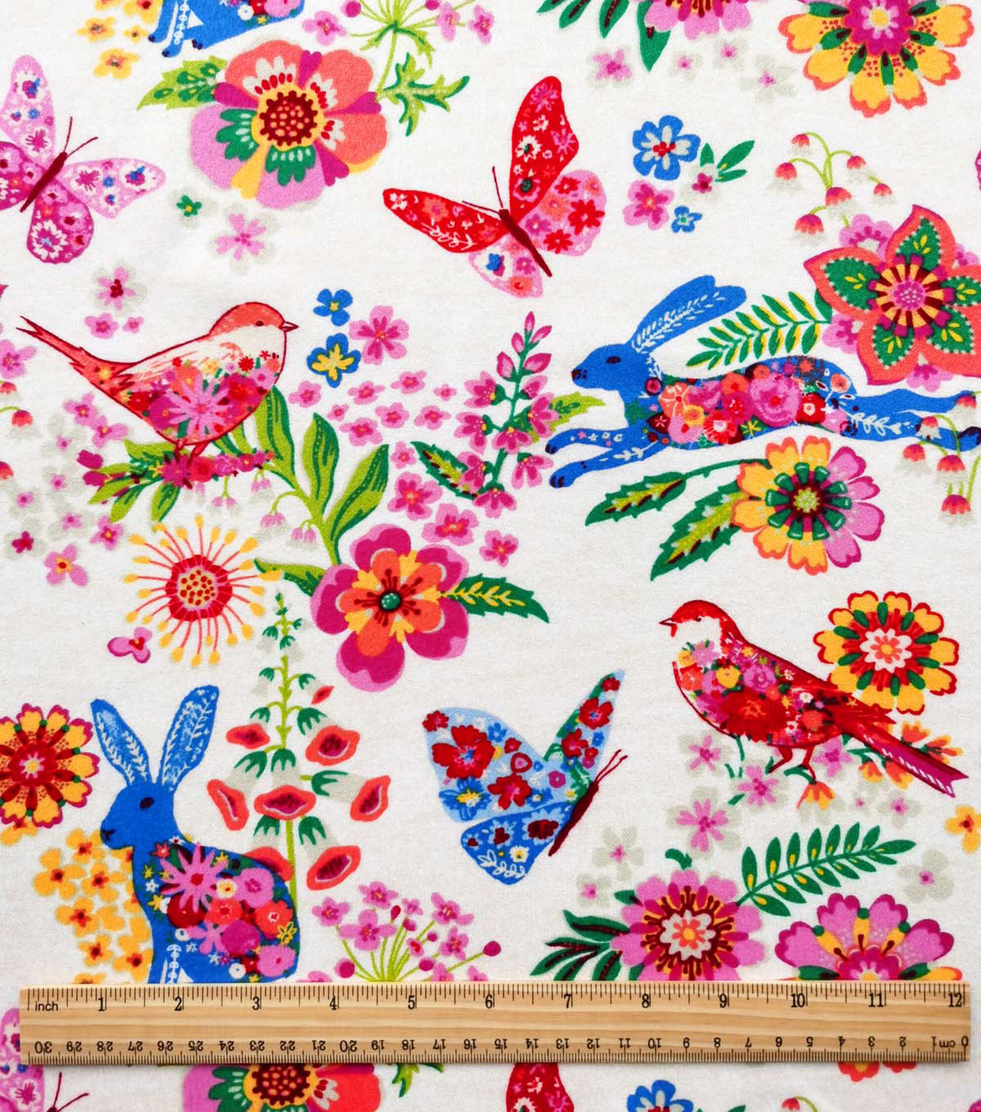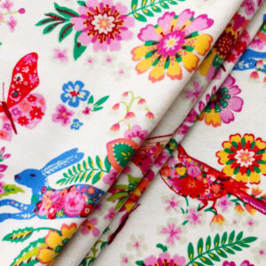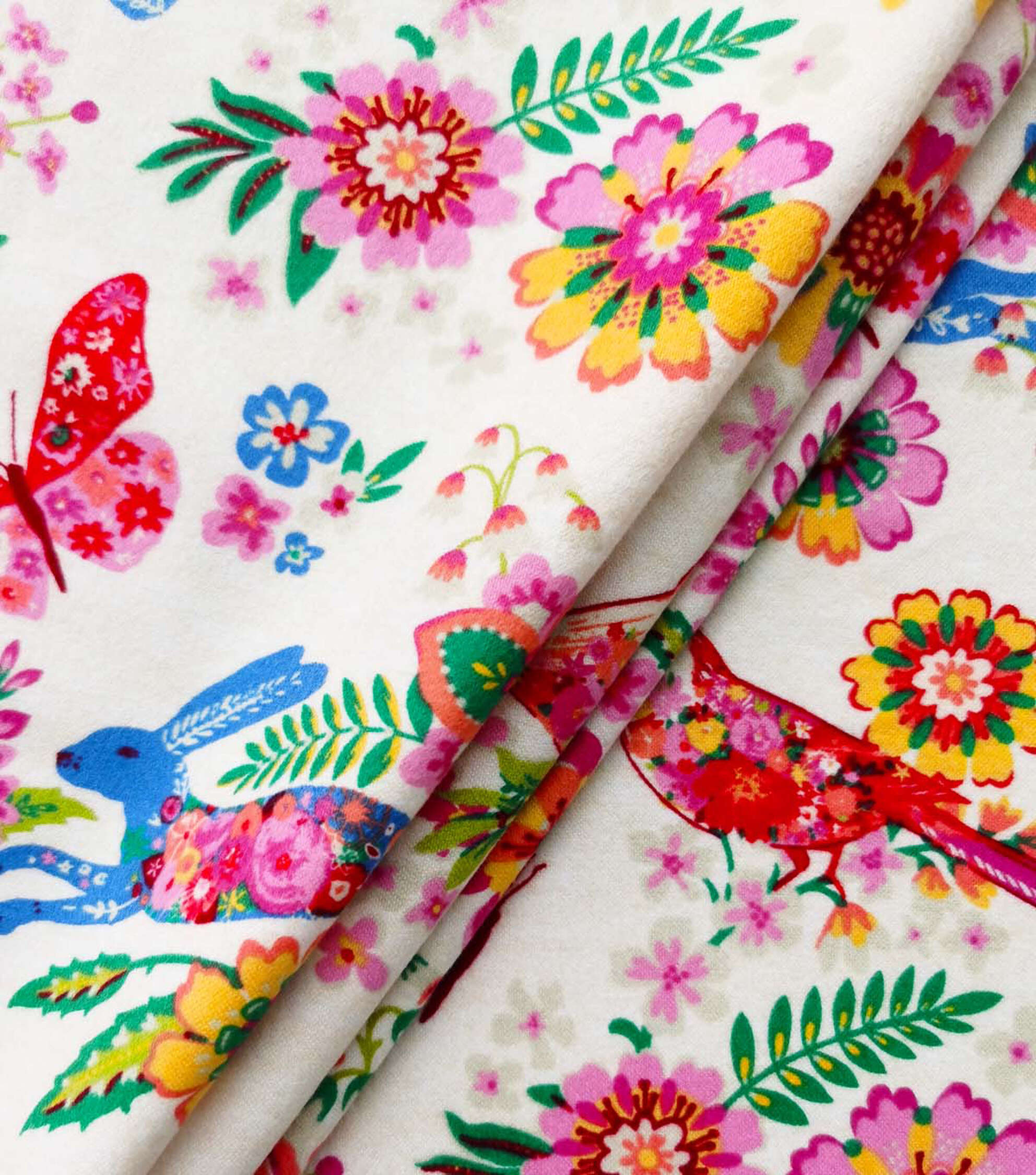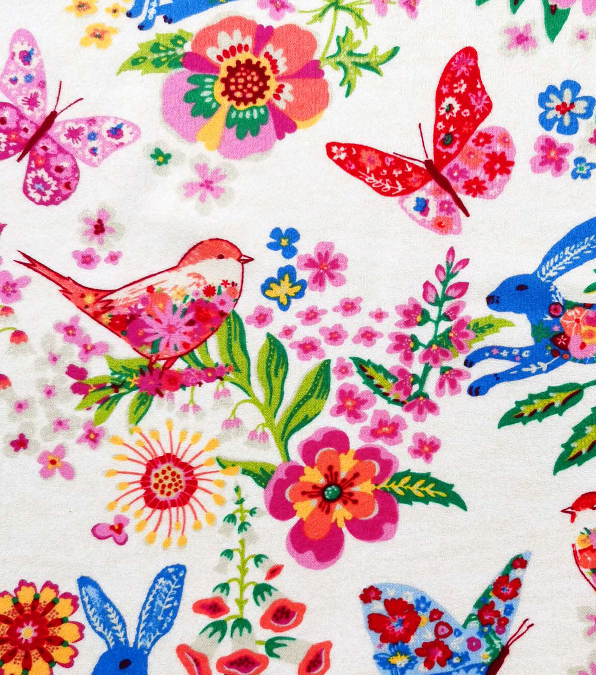 Bunnies & Birds White Luxe Flannel Fabric