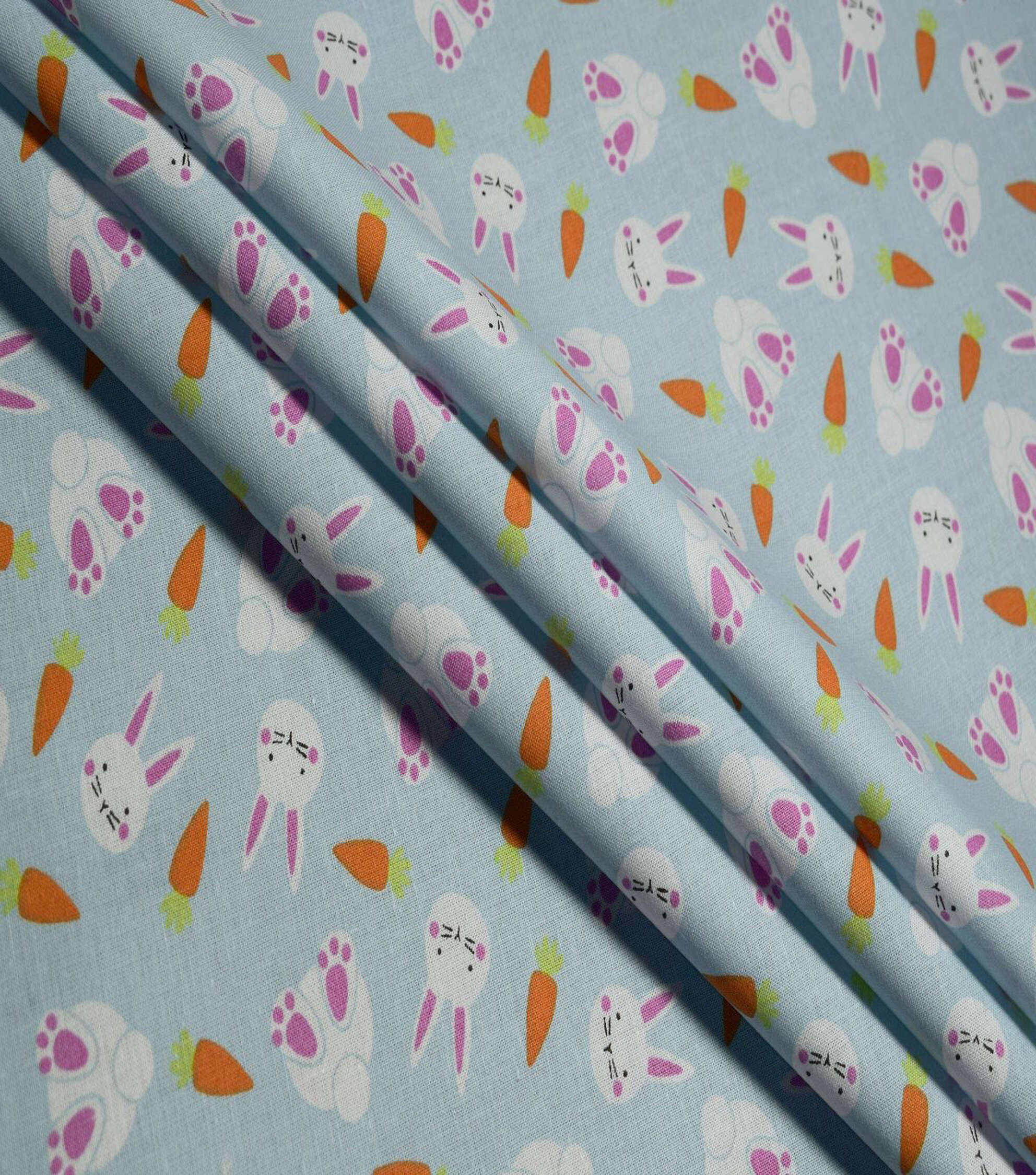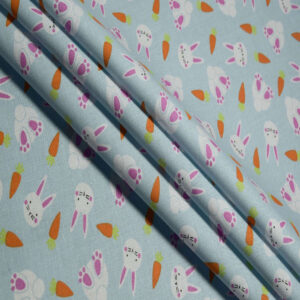 Get Ready for Easter with Our Bunnies & Carrots on Blue Cotton Fabric