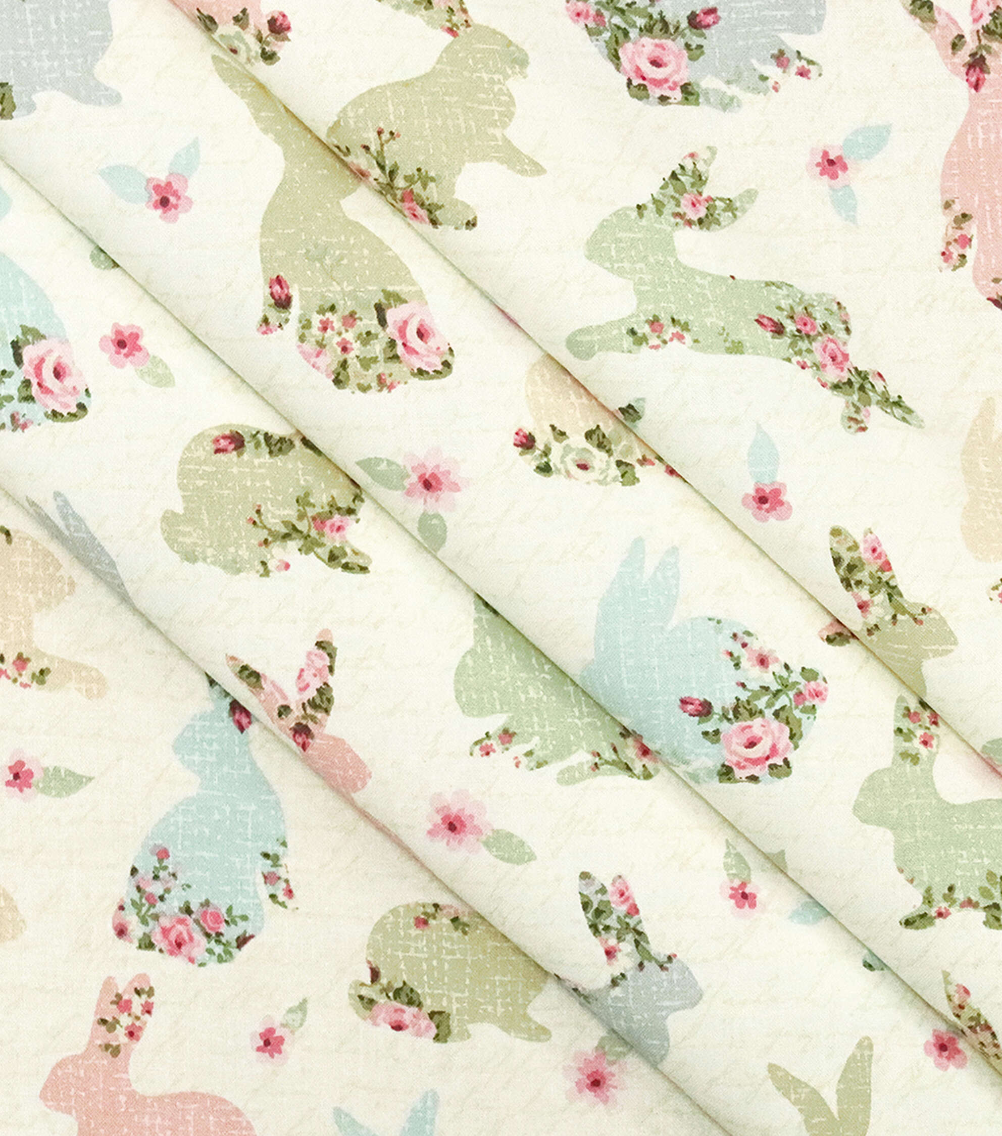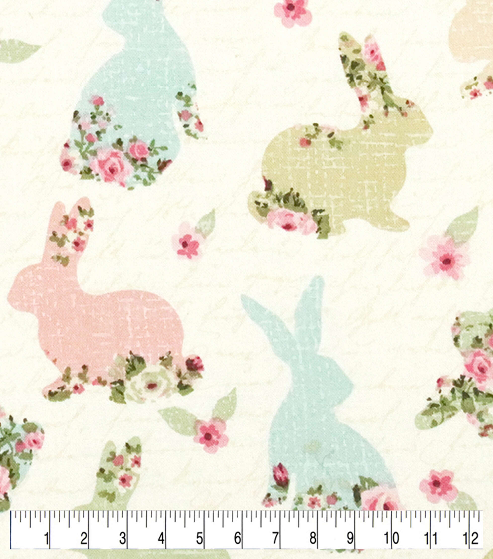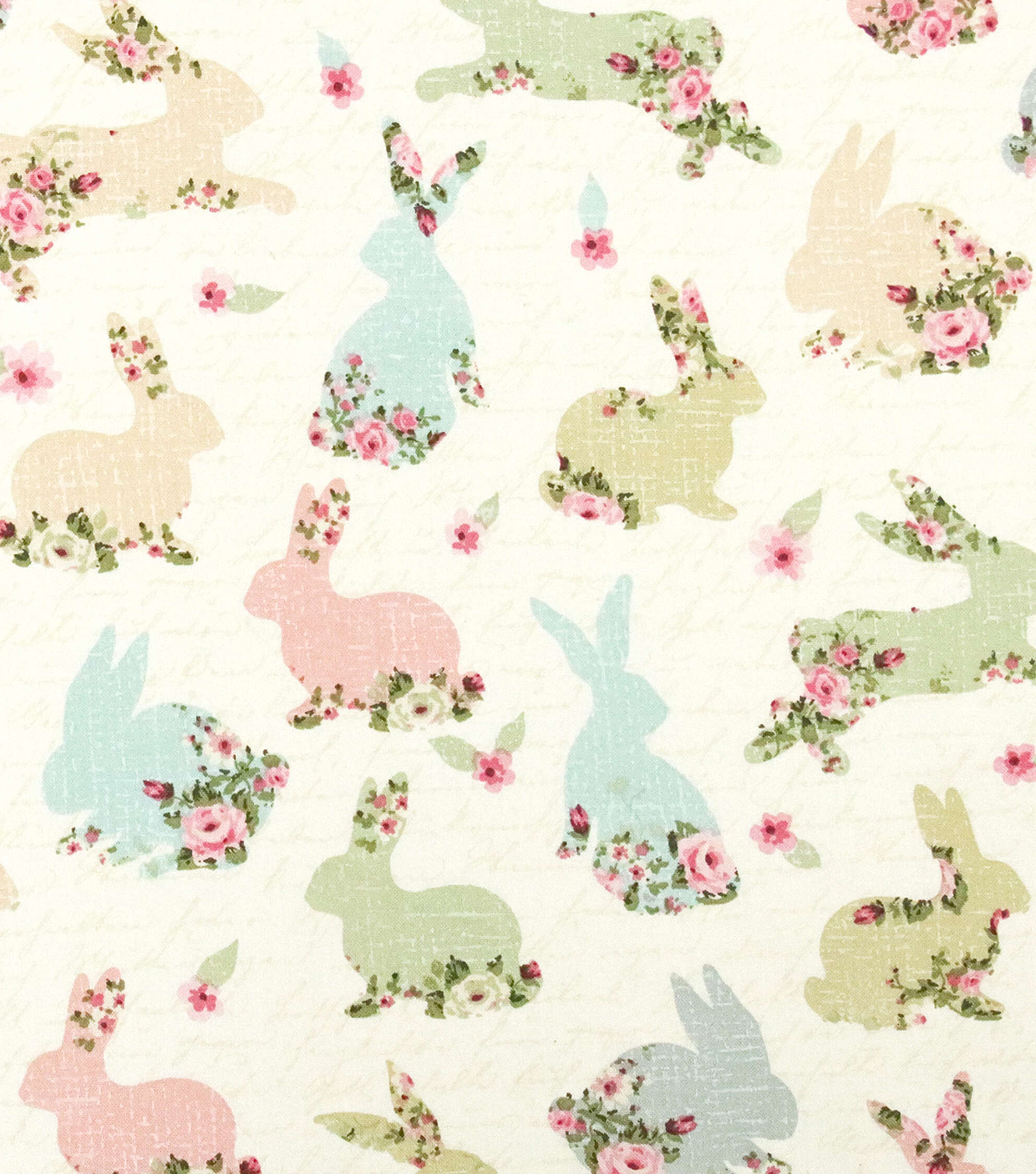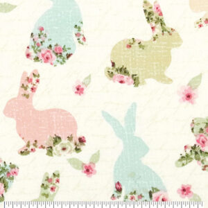 Bunnies with Roses On Words Easter Cotton Fabric