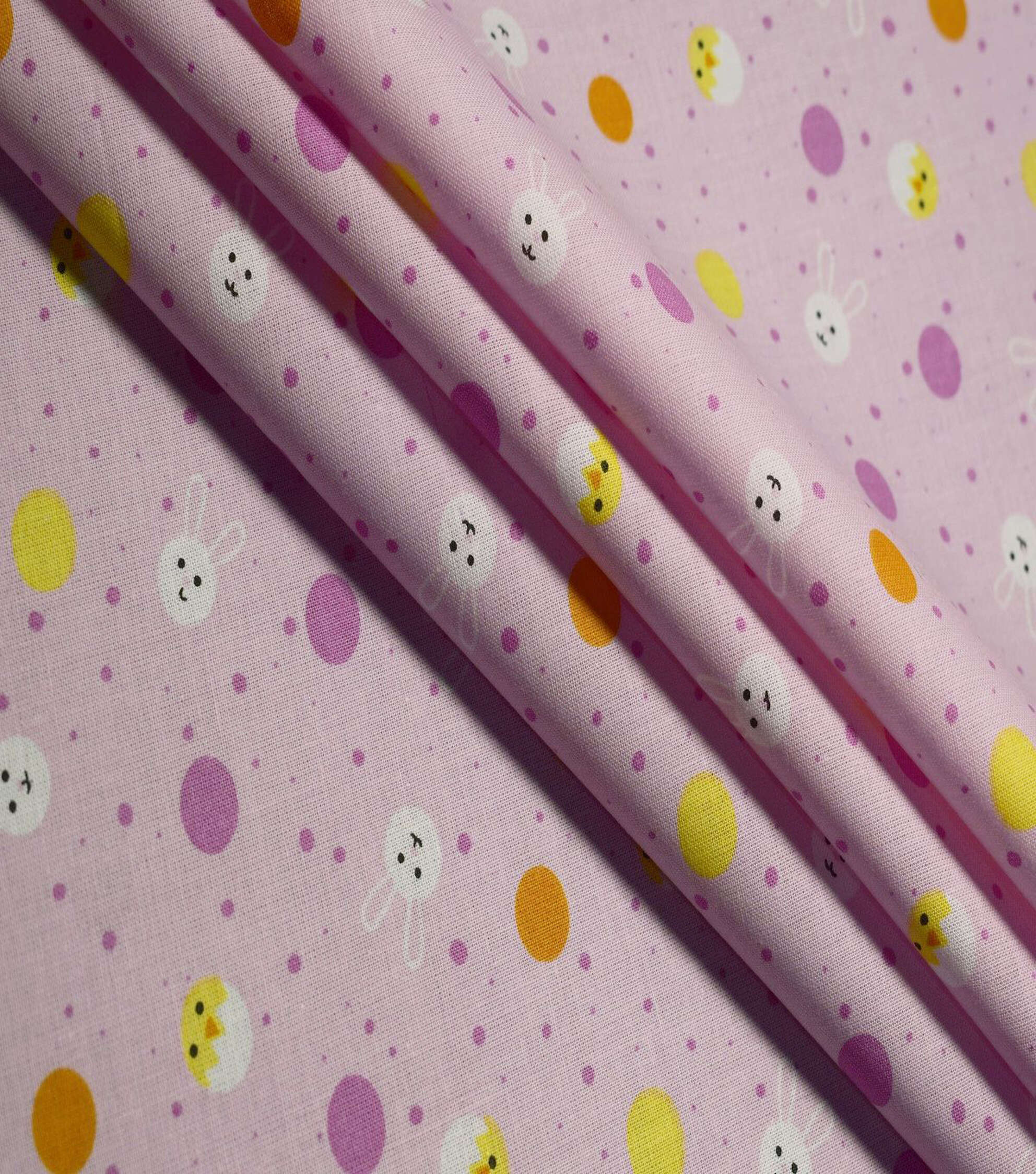 Get Ready for Easter with Chicks & Bunny on Pink Easter Cotton Fabric