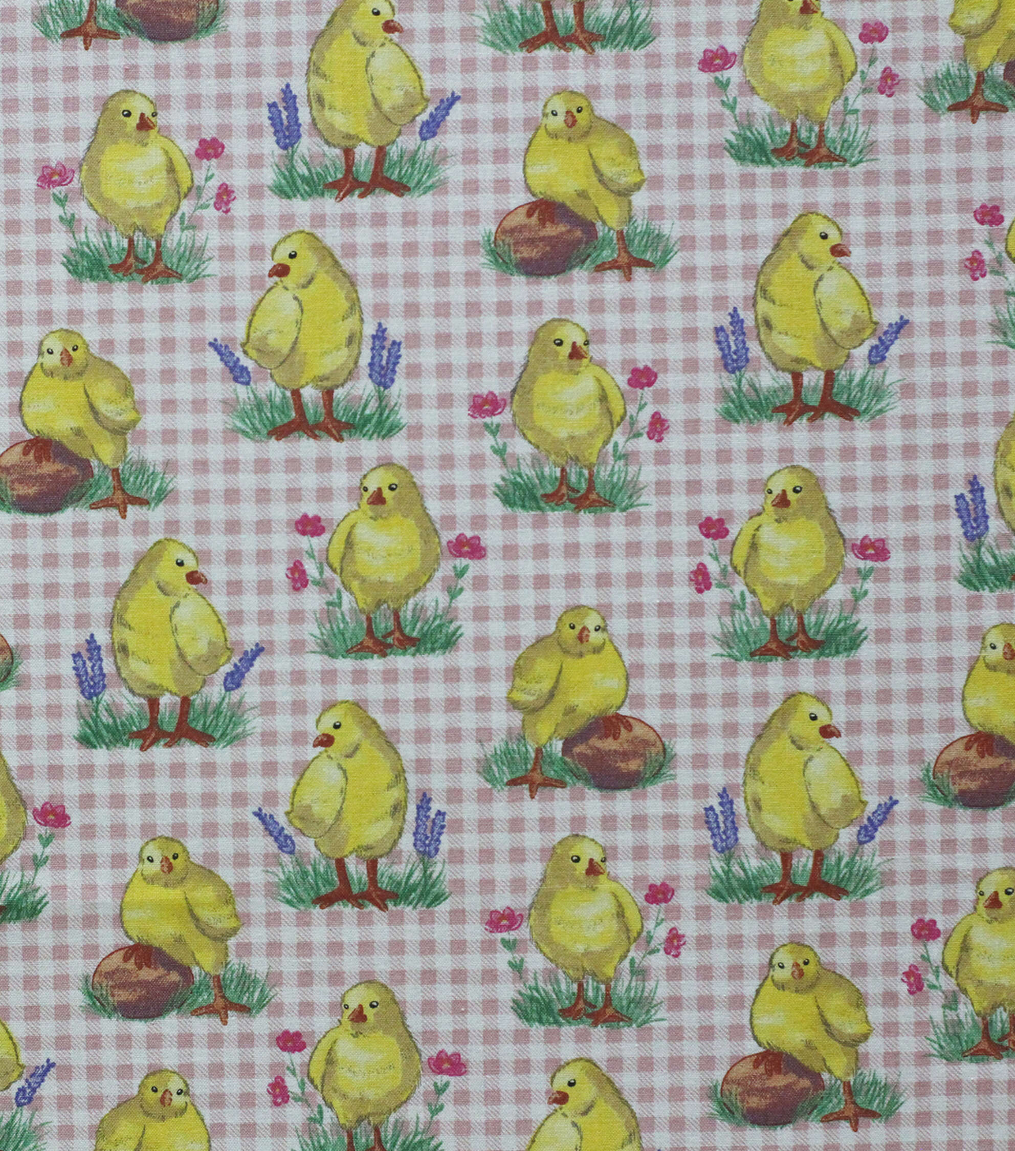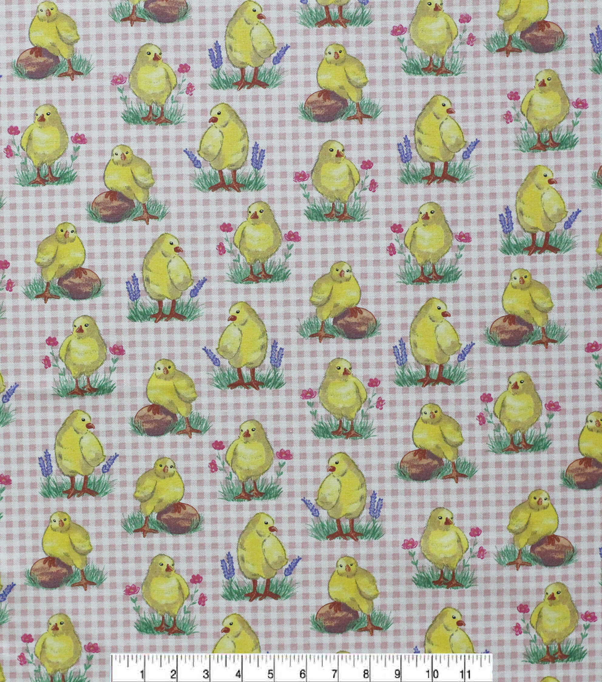 Chicks On Mauve Plaid Easter Cotton Fabric
