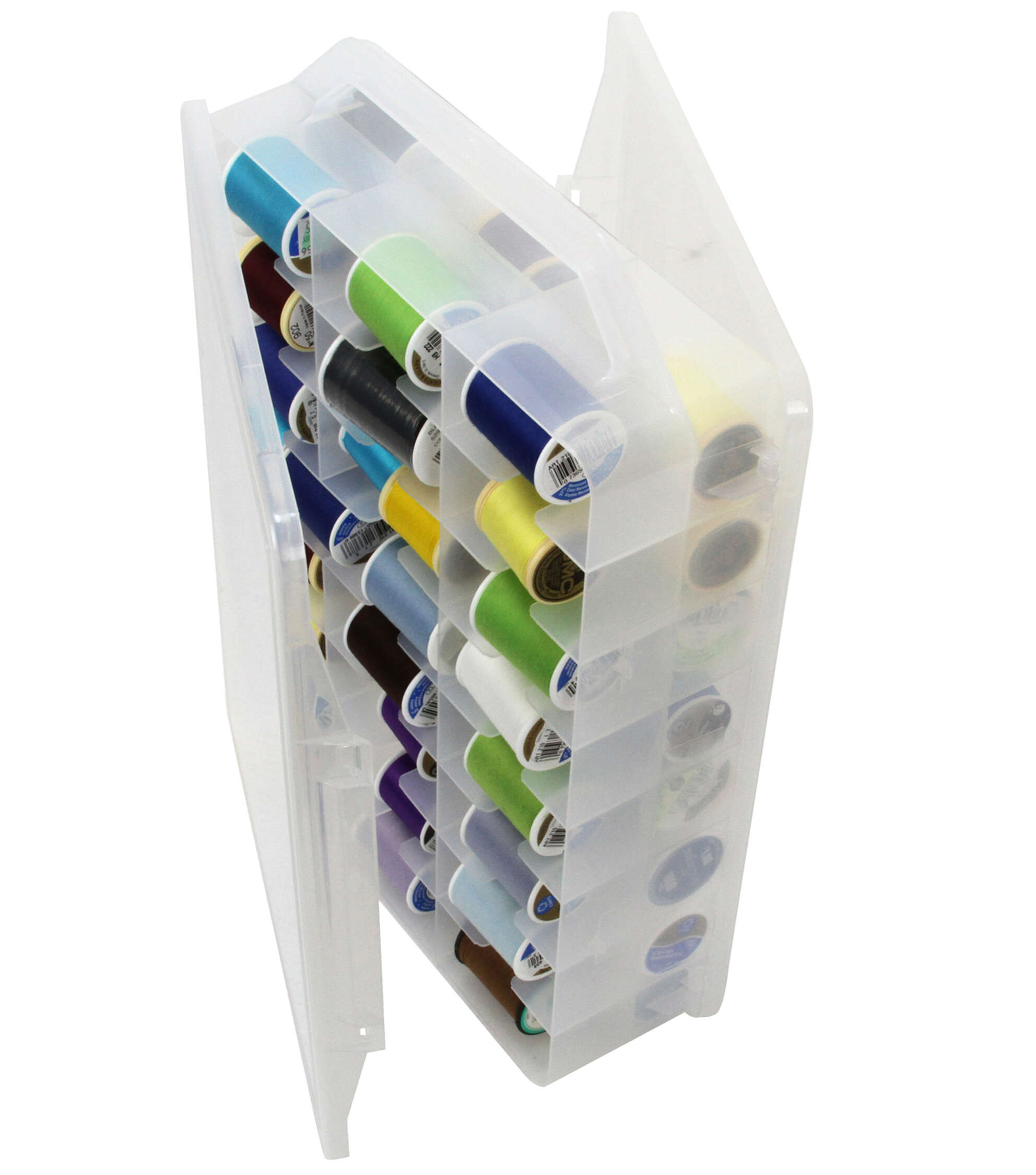 Organize your crafting essentials in the Creative Options Thread Organizer-Clear. It’s crafted of sturdy and transparent plastic and features two hinged doors for easy accessibility from either side. With 46 compartments in the interior portion, you can place plenty of accessories like spools, bobbins, floss and other tiny embellishments. This organizer is designed with a convenient carry handle for easy portability.